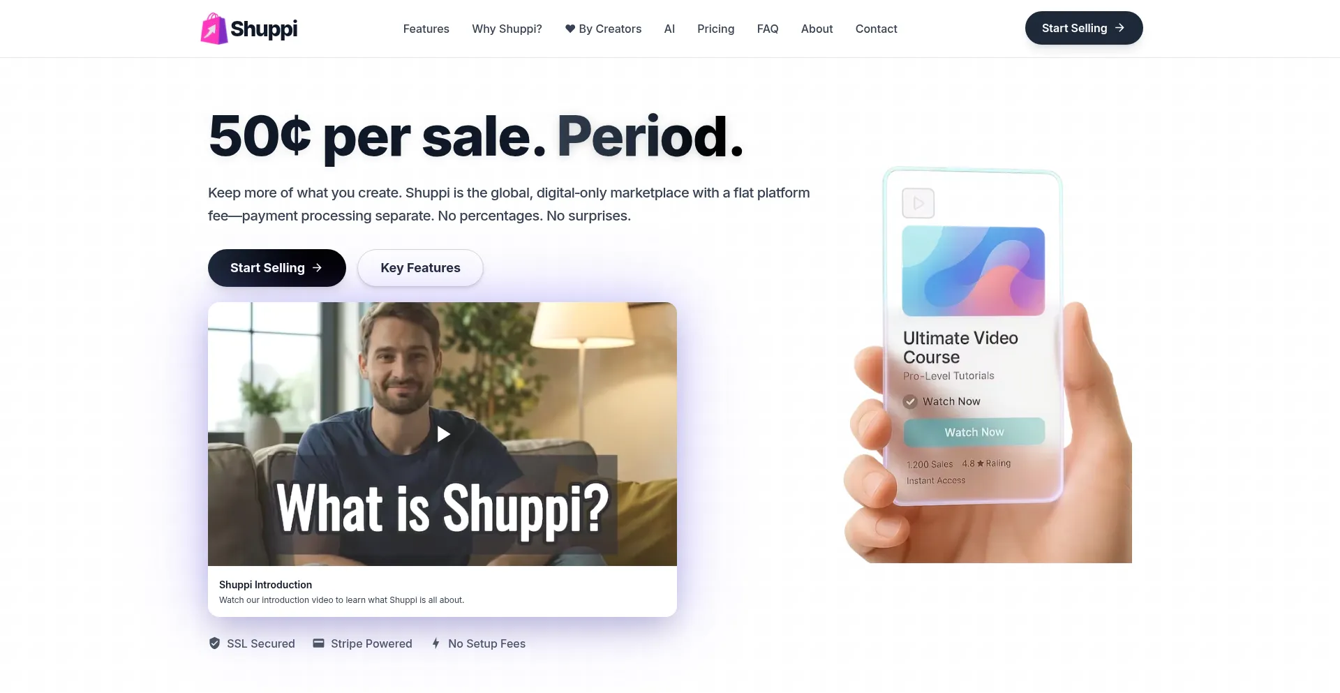 Join Shuppi — the global marketplace where creators sell, buyers discover, and help you grow. Flat 50¢ fee per sale. No percentages. Keep more of what you create.