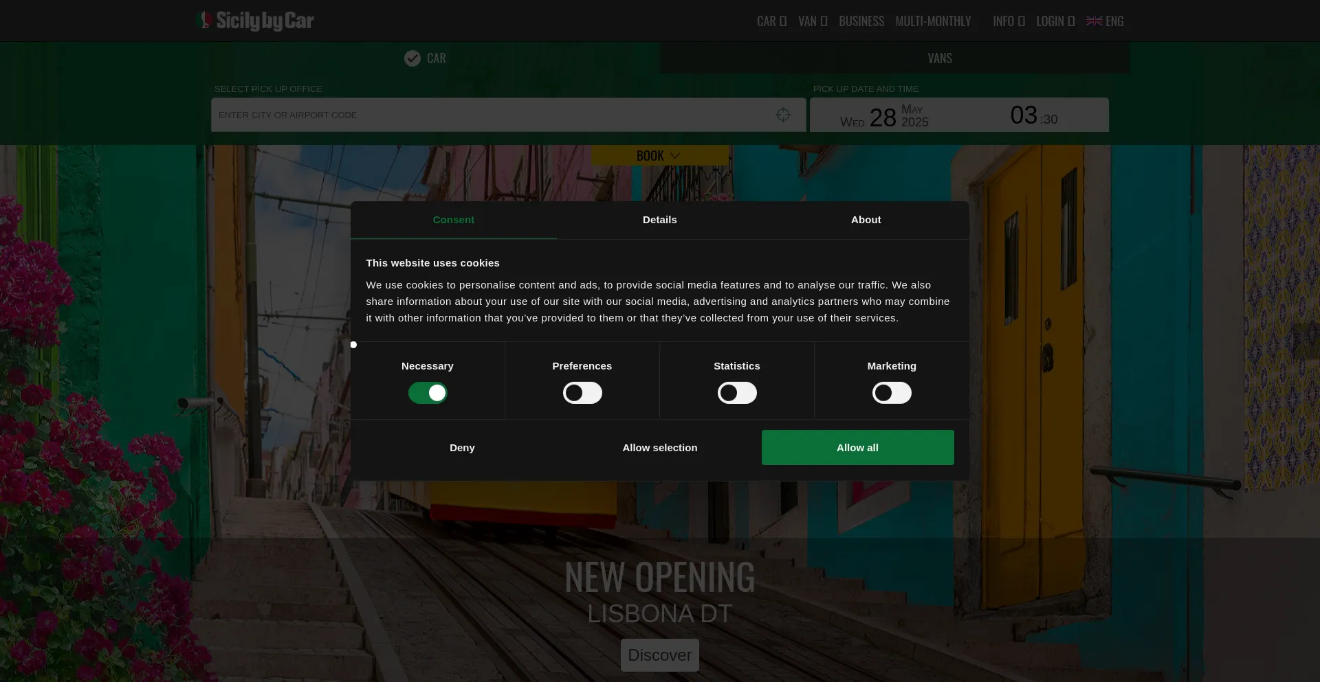 The website implements cookie consent mechanisms in compliance with privacy regulations such as GDPR or CCPA. This demonstrates that sicilybycar.com adheres to data protection standards and provides users with control over personal data collection practices.