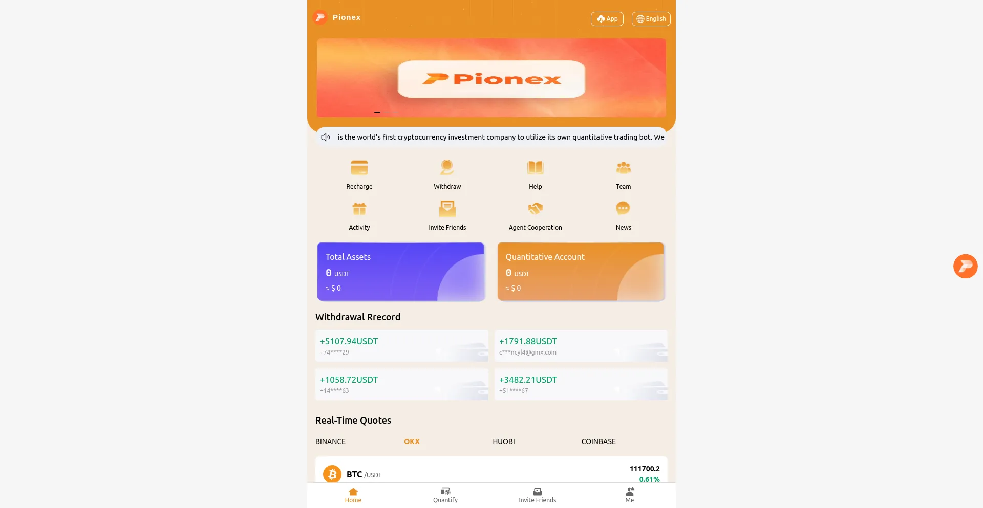 Pionex is the world's first cryptocurrency investment company with an independent quantitative trading robot.
