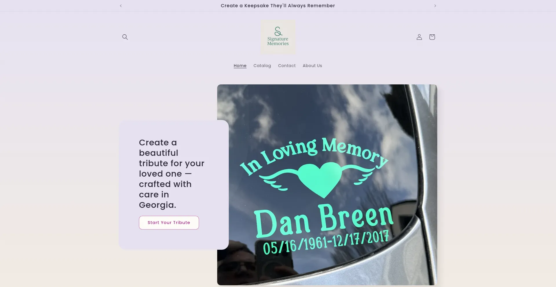 Analysis indicates that signaturememories.shop operates as an e-commerce platform facilitating online transactions for goods or services. The website implements shopping cart functionality, payment processing systems, and product catalog features typical of commercial retail operations.
