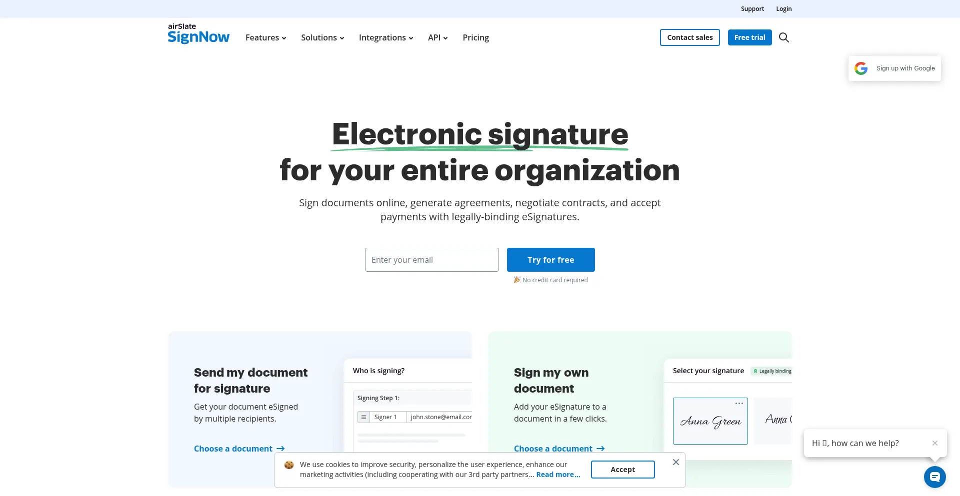 The website implements cookie consent mechanisms in compliance with privacy regulations such as GDPR or CCPA. This demonstrates that signnow.com adheres to data protection standards and provides users with control over personal data collection practices.