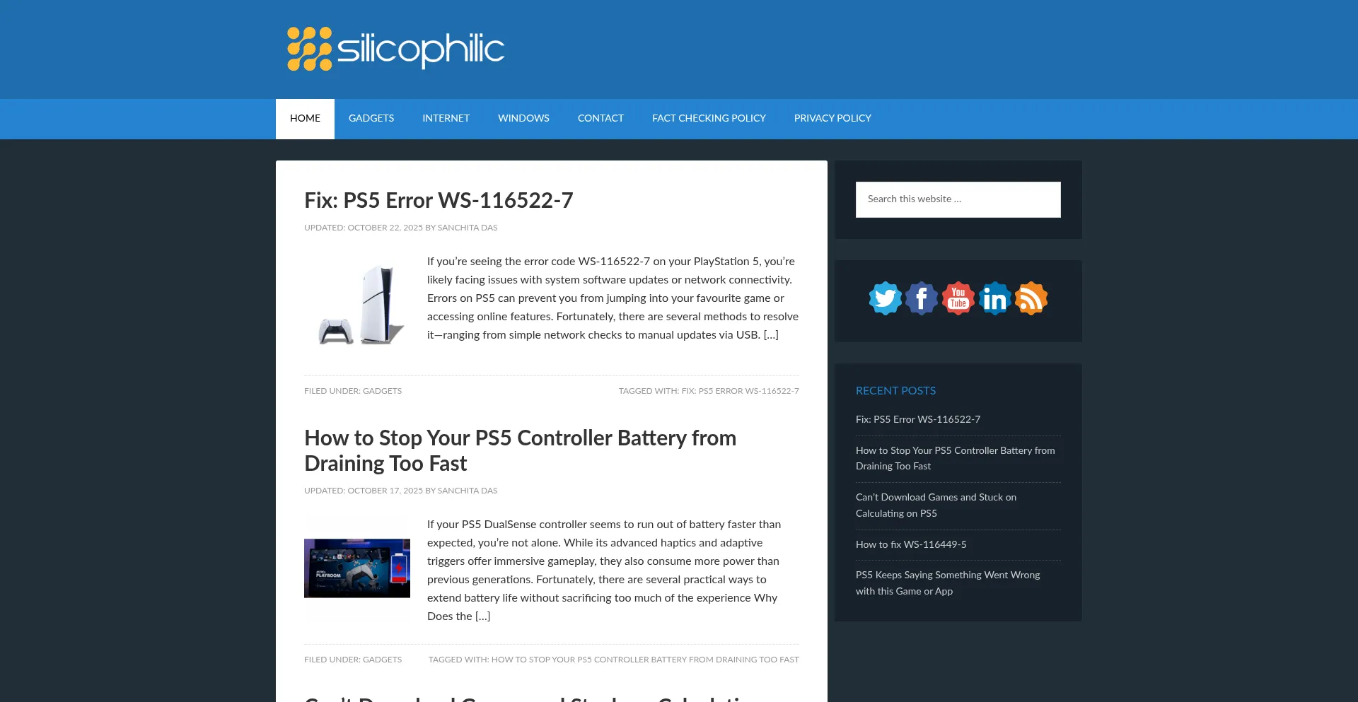 The silicophilic.com website uses Google Tag Manager to add and update tracking tags on its website.