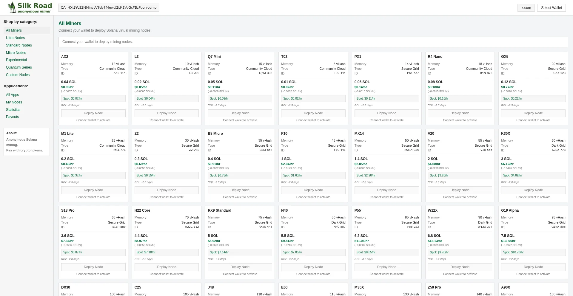 Connect your wallet to deploy Solana virtual mining nodes.