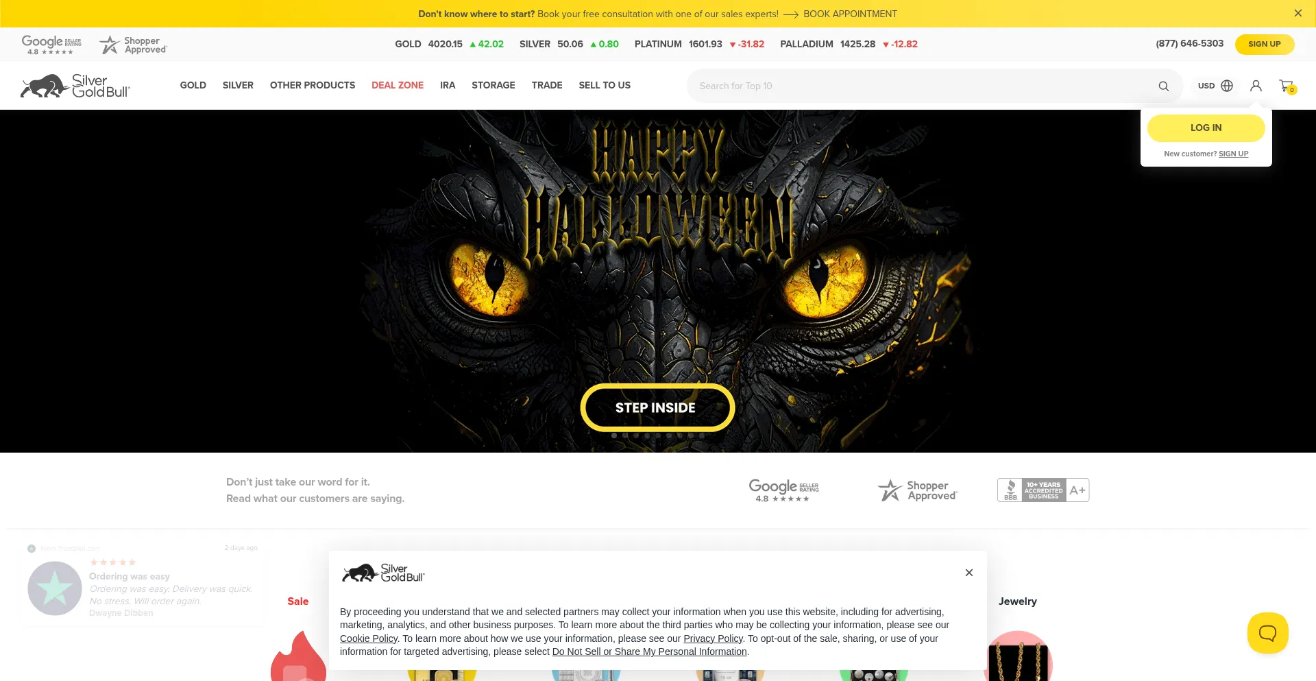The website implements cookie consent mechanisms in compliance with privacy regulations such as GDPR or CCPA. This demonstrates that silvergoldbull.com adheres to data protection standards and provides users with control over personal data collection practices.