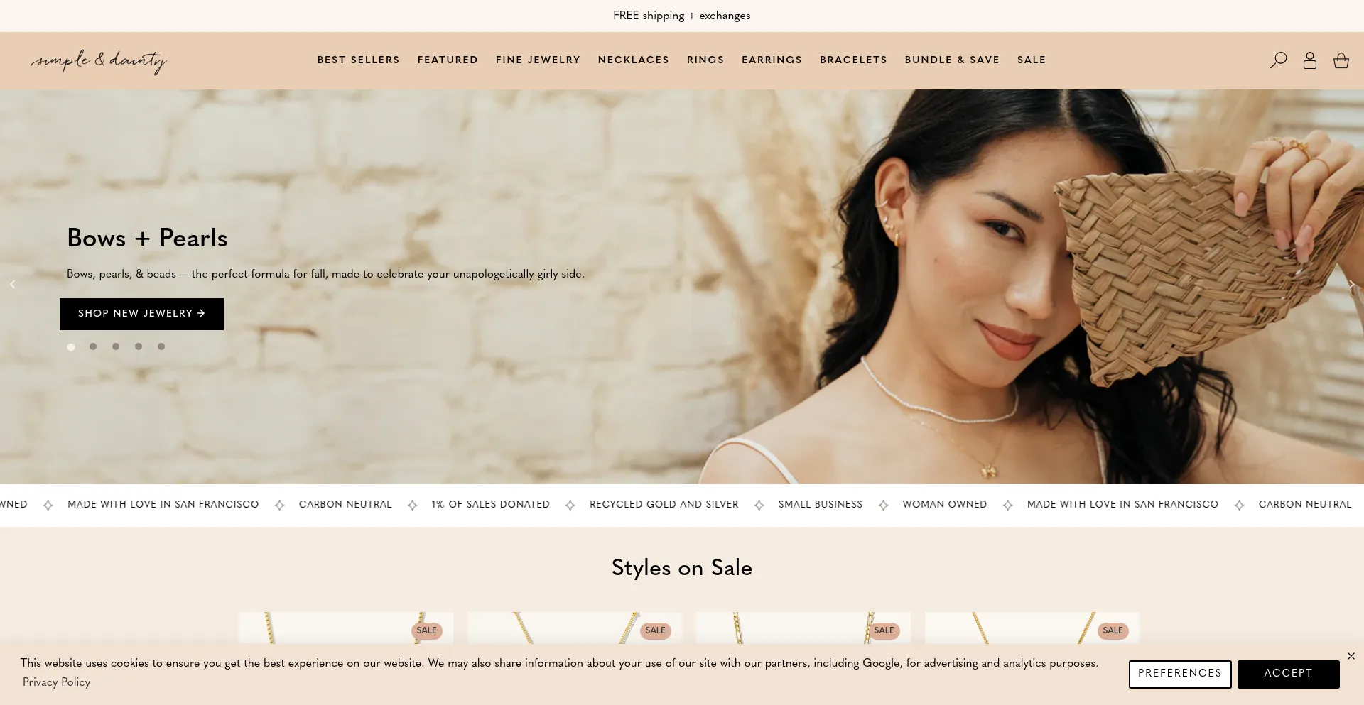 The simpleanddainty.com website utilizes free e-commerce platform solutions, which may indicate cost-conscious operations but could also suggest limitations in security features, customer support, or advanced functionality compared to enterprise-grade solutions.