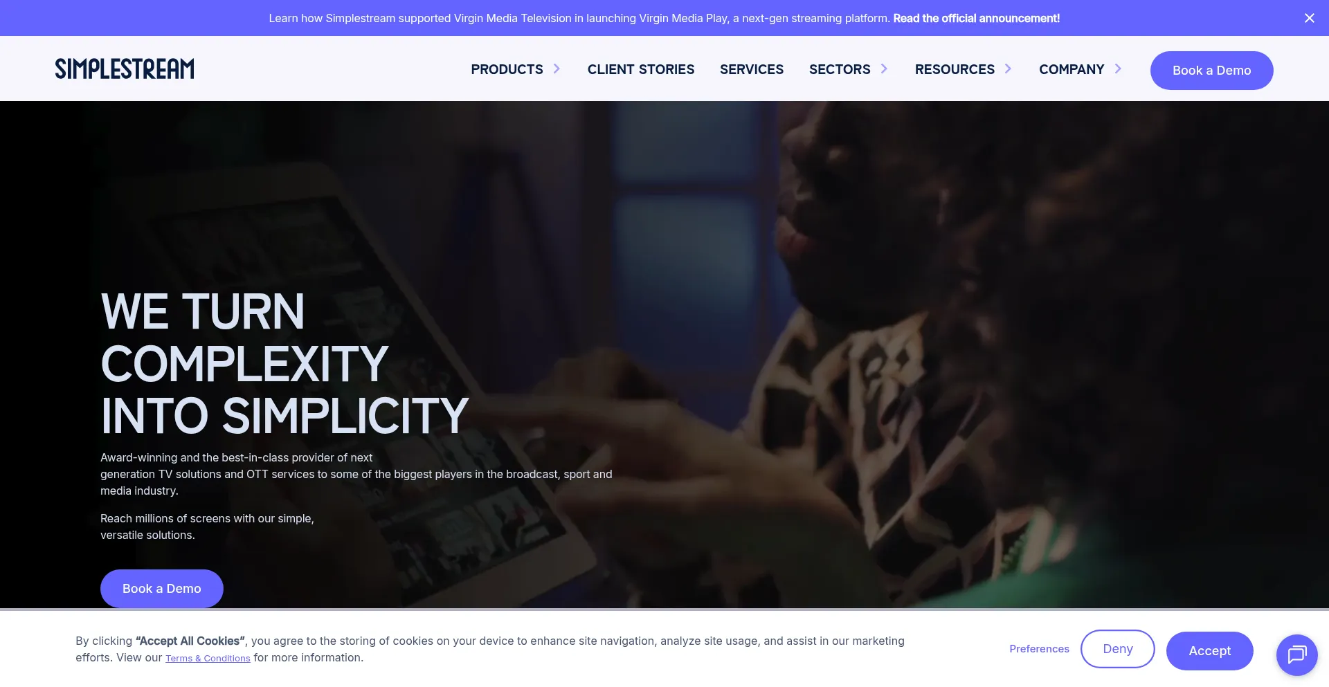 We are Simplestream, an award-winning and best-in-class provider of next-generation TV solutions to some of the biggest players in the broadcast, sport, and media industry.