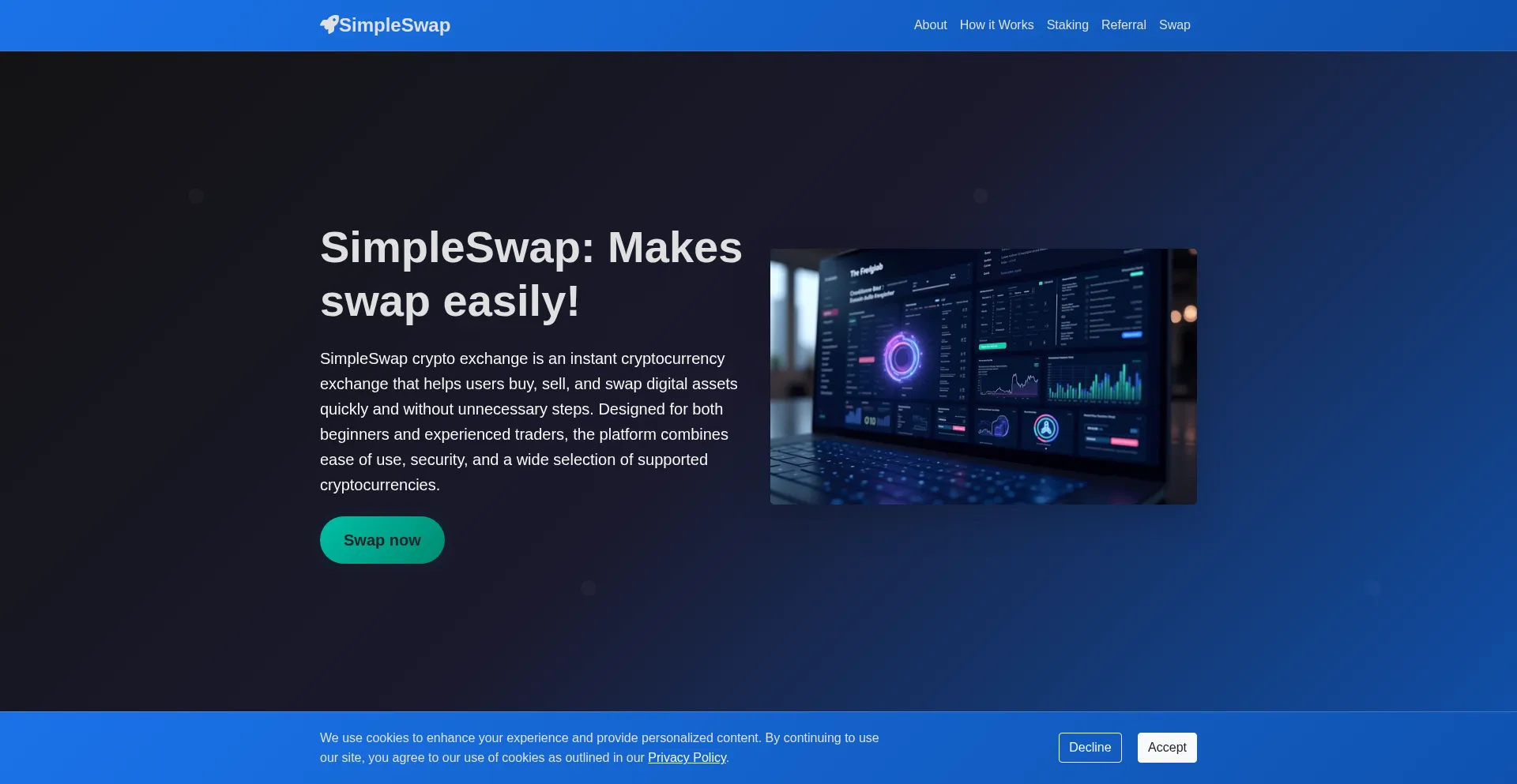 The website implements cookie consent mechanisms in compliance with privacy regulations such as GDPR or CCPA. This demonstrates that simpleswap.ac adheres to data protection standards and provides users with control over personal data collection practices.