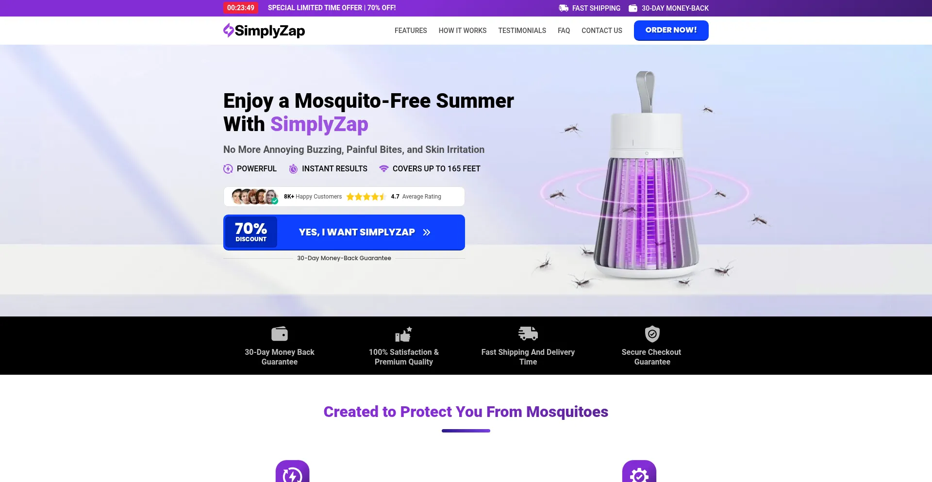 SimplyZap is the ultimate solution to combat mosquitoes. This powerful lamp’s technology ensures it attracts mosquitoes and instantly neutralizes them. Enjoy a peaceful and bi...
