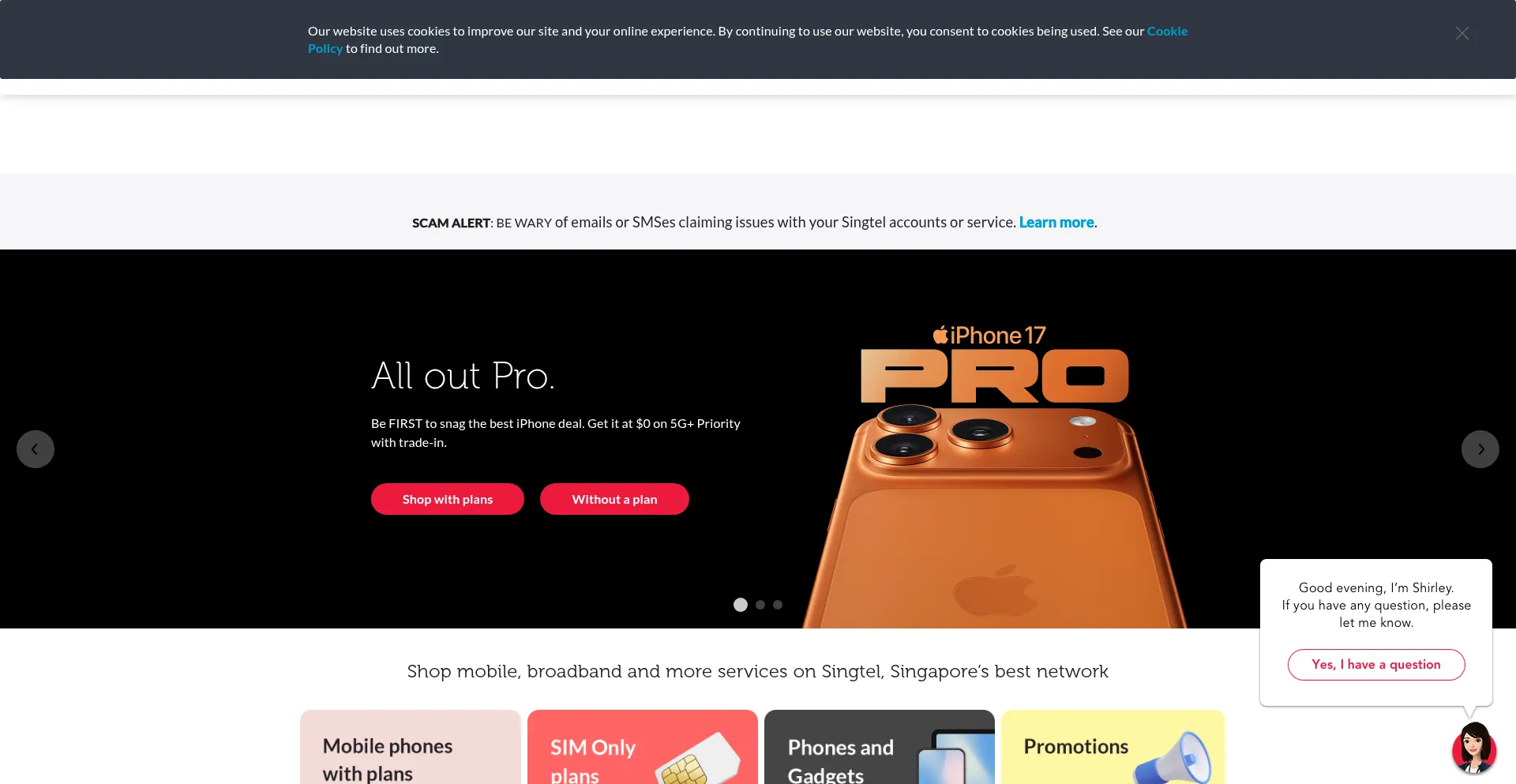 The website implements cookie consent mechanisms in compliance with privacy regulations such as GDPR or CCPA. This demonstrates that singtel.com.sg adheres to data protection standards and provides users with control over personal data collection practices.