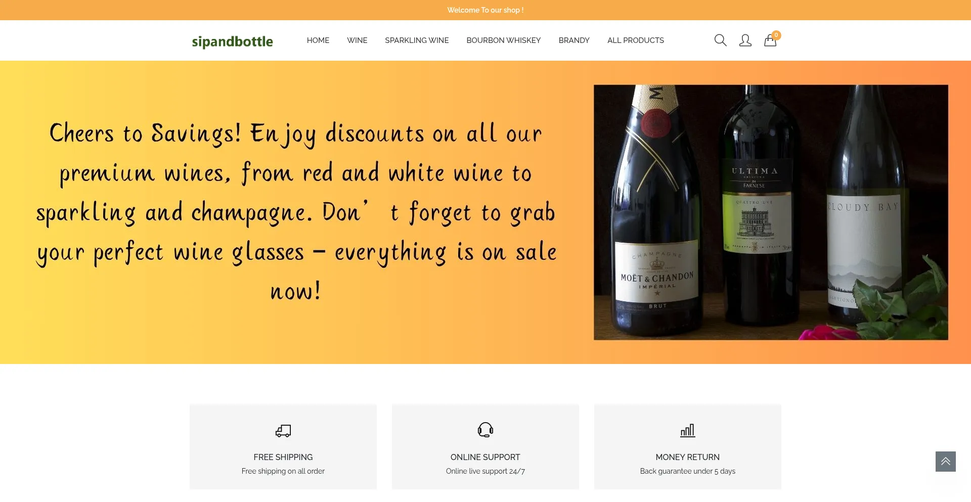 Analysis indicates that sipandbottle.com operates as an e-commerce platform facilitating online transactions for goods or services. The website implements shopping cart functionality, payment processing systems, and product catalog features typical of commercial retail operations.