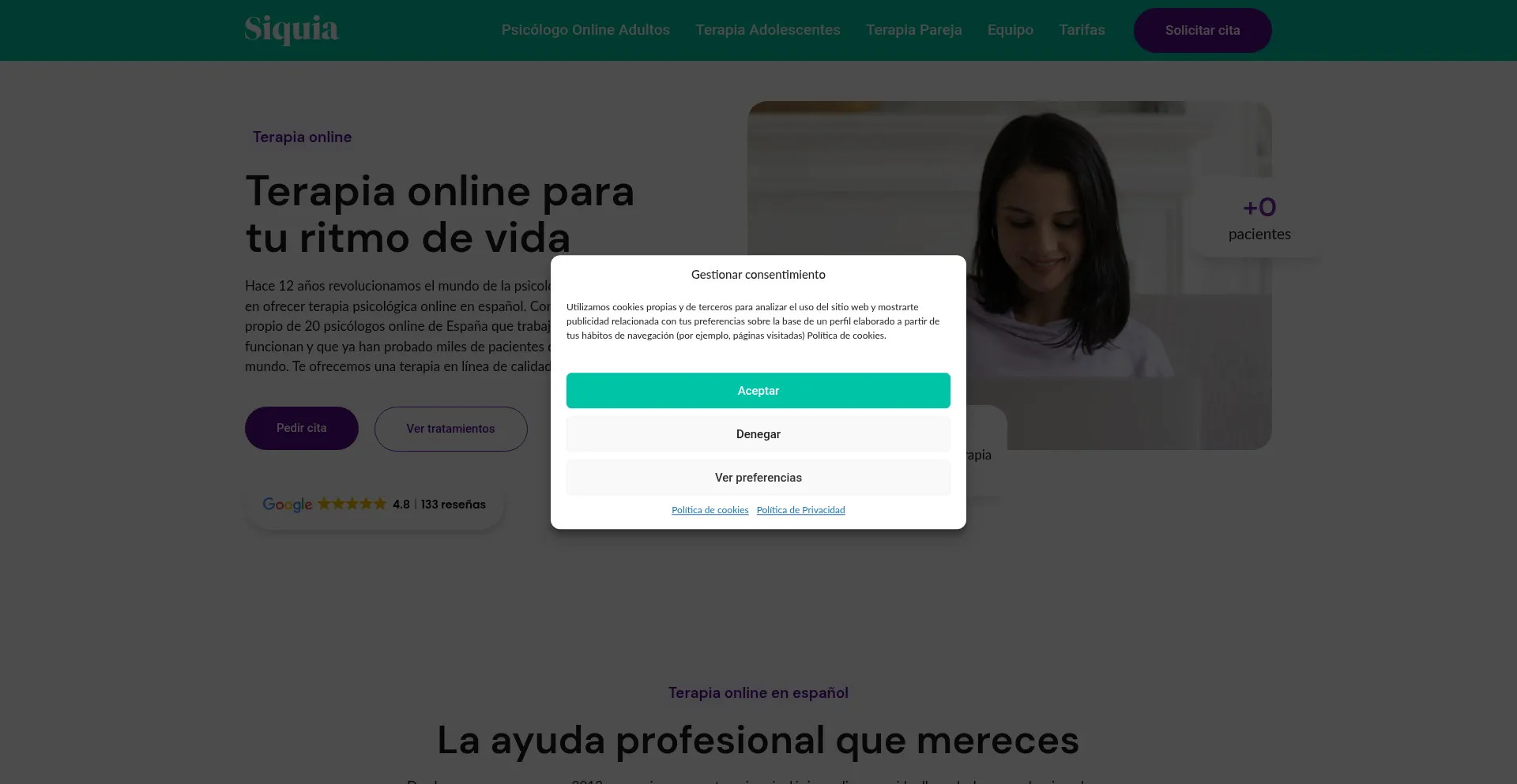 Líderes en terapia en línea desde 2012 | +6000 pacientes de terapia online con nuestros psicólogos en línea | Terapia desde 45€.