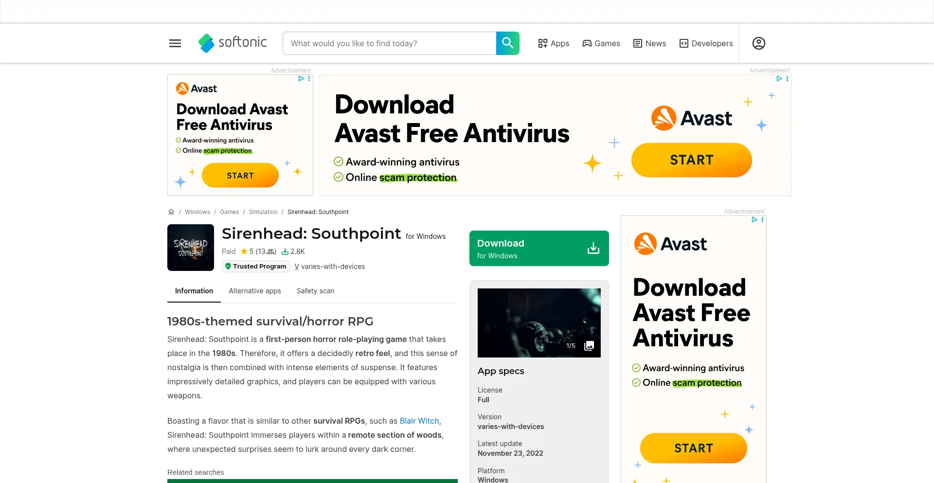 Sirenhead-southpoint.en.softonic.com Reviews | Scam, Legit or Safe Check