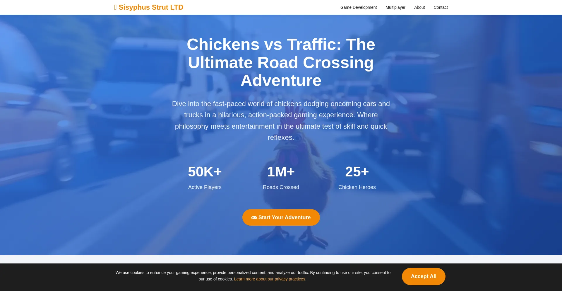 Chickens vs Traffic - The ultimate road crossing adventure game by Sisyphus Strut. Fast-paced action, philosophical gaming, character unlocks, and multiplayer fun for Gen Z and ...