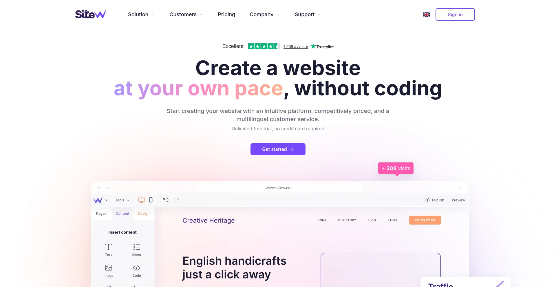 Create a free website with SiteW! Easy-to-use and quick, SiteW is the easiest tool to create a website you love. Not to be missed!