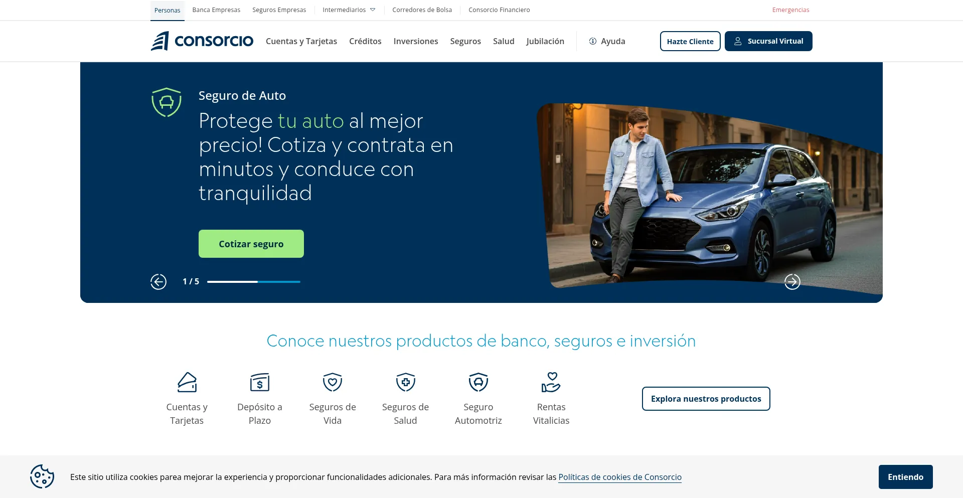 Descubre los mejores seguros y productos financieros de Banco adaptados a tus necesidades en Consorcio. ¡Cotiza de forma rápida, simple y 100% online!