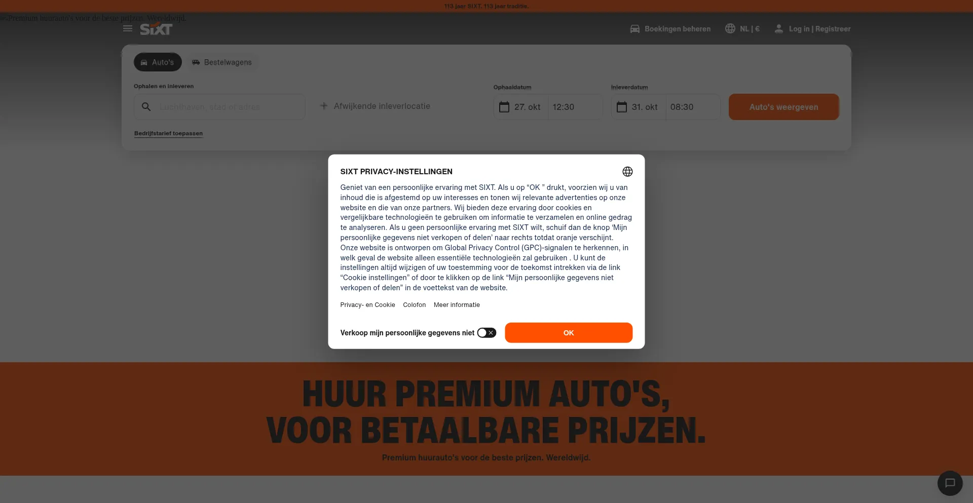 We scanned sixt.nl and found it to be legitimate. Our analysis shows a high trust score of 100/100, indicating this website appears to be very safe to use.