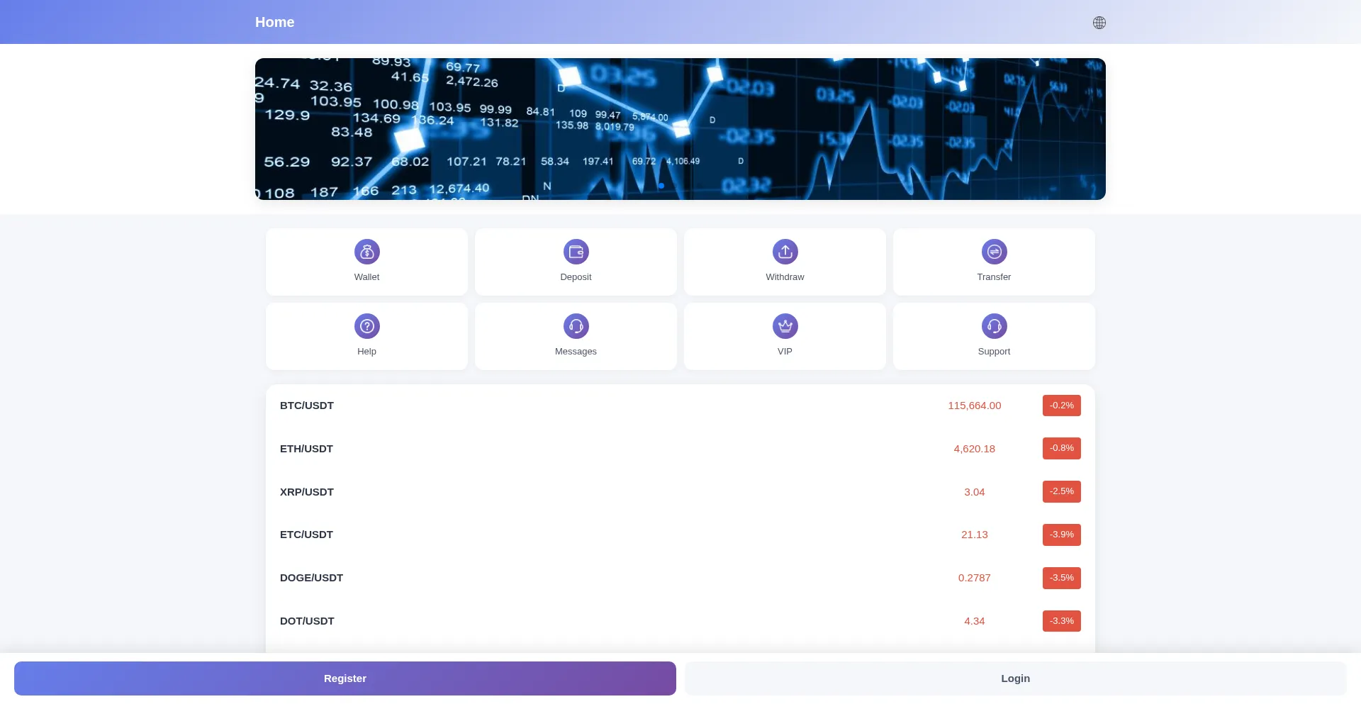 Cryptocurrency, Financial Service, Registration Form, Bootstrap Framework, Google Tag Manager, Cloudflare Browser Insights, Zepto.js Framework, Respond.js Framework, Young Domain