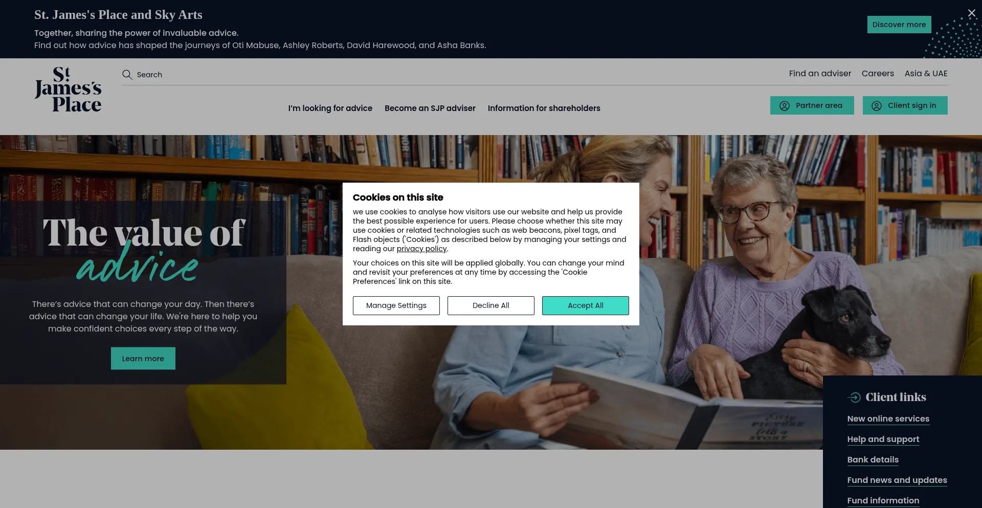 The website implements cookie consent mechanisms in compliance with privacy regulations such as GDPR or CCPA. This demonstrates that sjp.co.uk adheres to data protection standards and provides users with control over personal data collection practices.