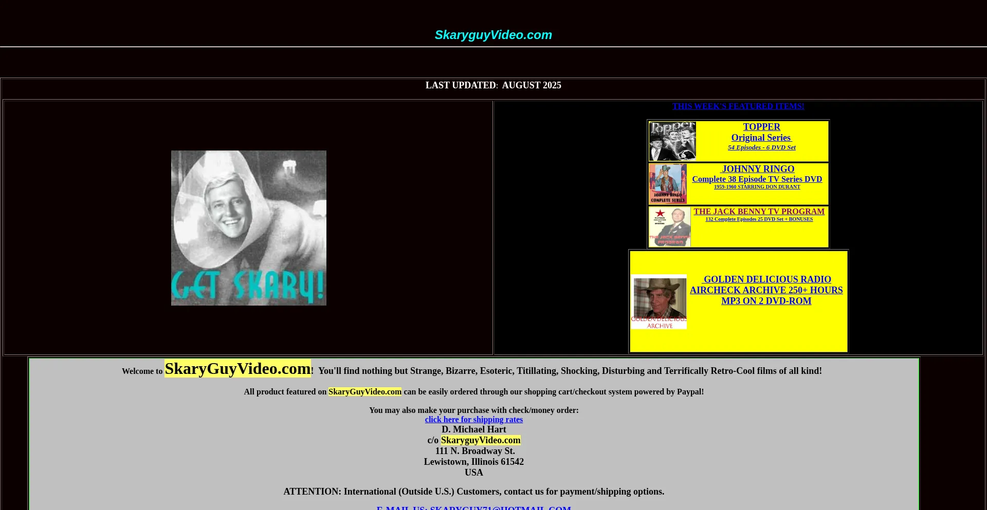 SkaryGuyVideo.com - Strange, Bizarre, Esoteric, Titillating, Shocking, Disturbing and Terrifically Retro-Cool films of all kind!