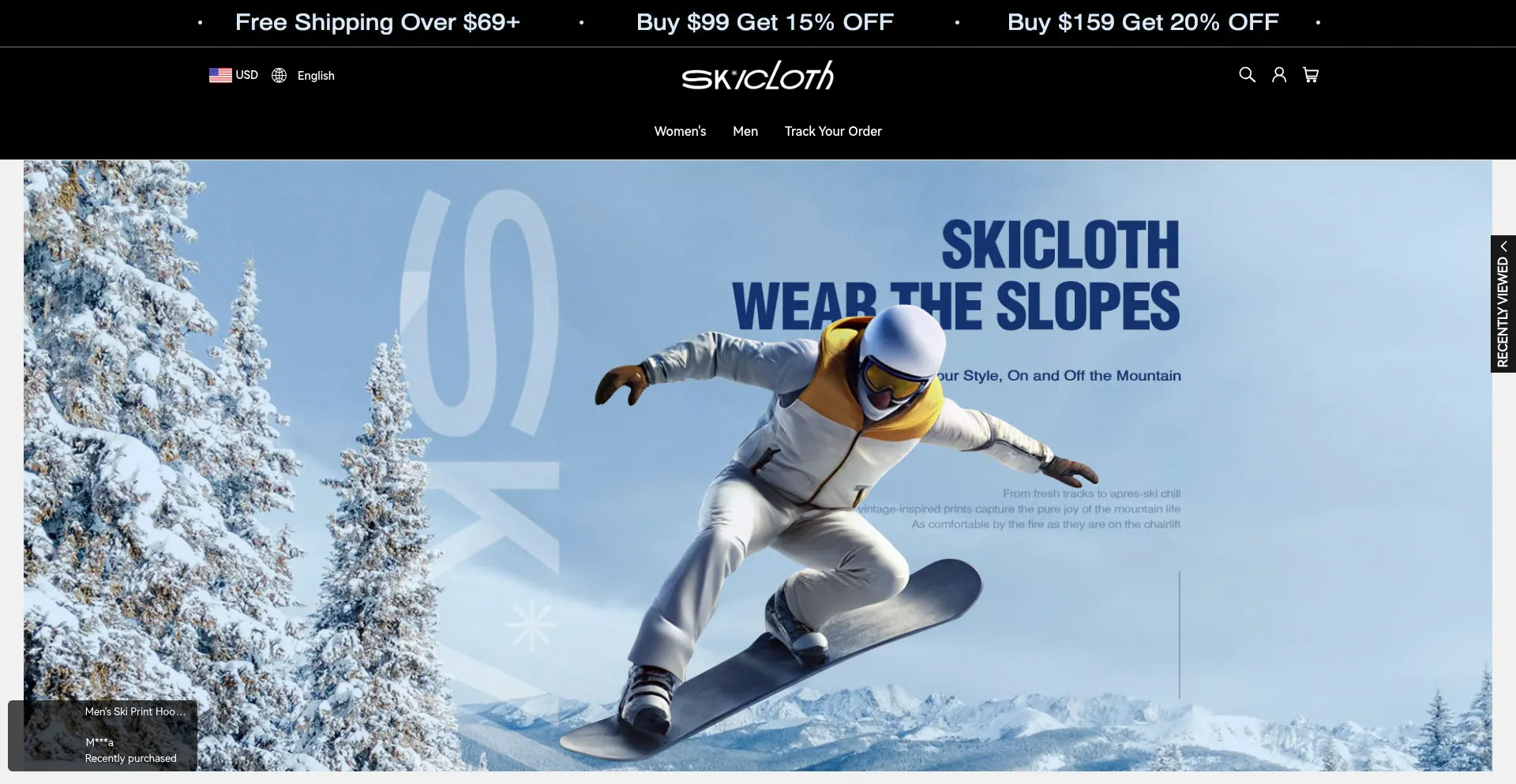 Analysis indicates that skicloth.com operates as an e-commerce platform facilitating online transactions for goods or services. The website implements shopping cart functionality, payment processing systems, and product catalog features typical of commercial retail operations.
