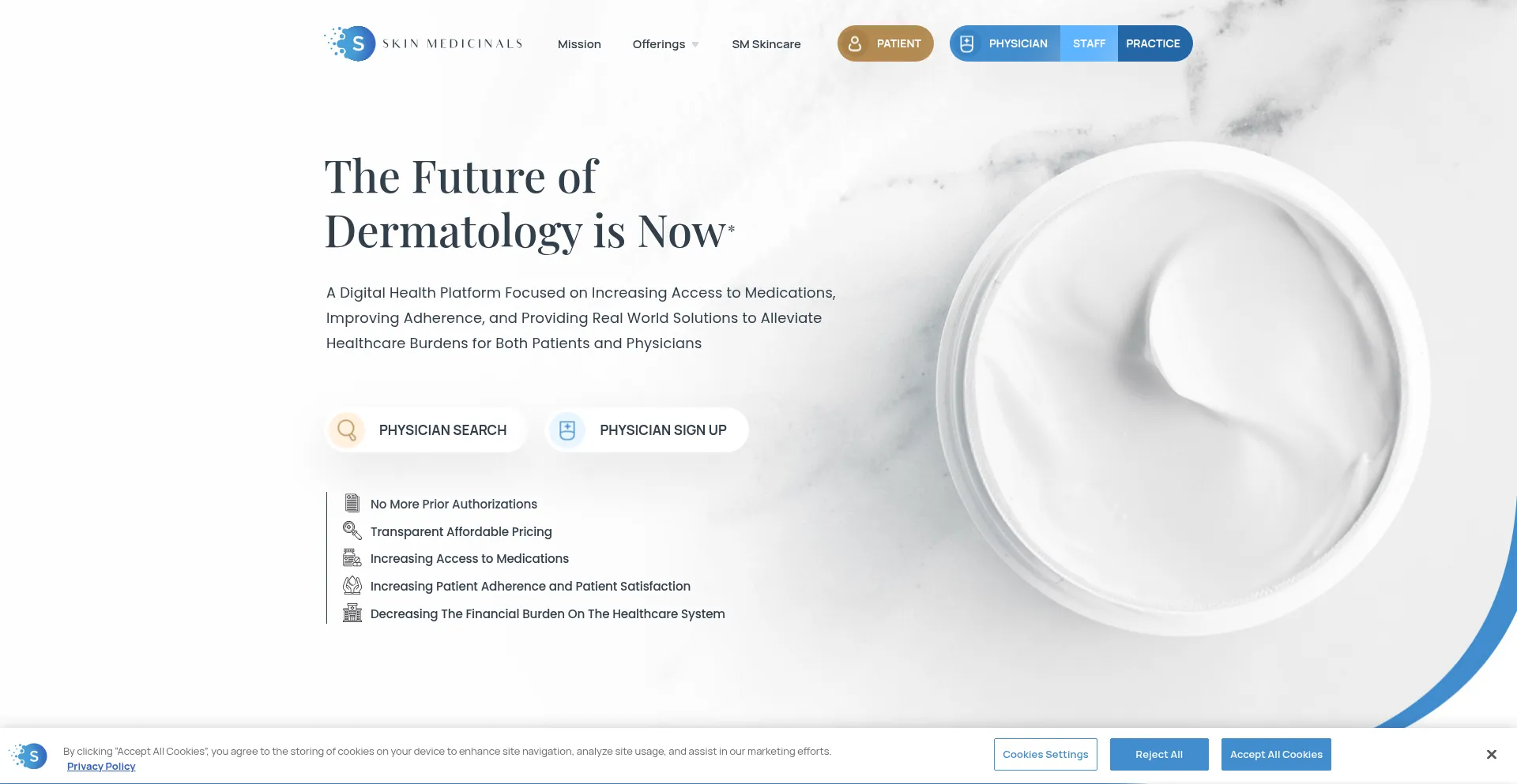 The website implements cookie consent mechanisms in compliance with privacy regulations such as GDPR or CCPA. This demonstrates that skinmedicinals.com adheres to data protection standards and provides users with control over personal data collection practices.