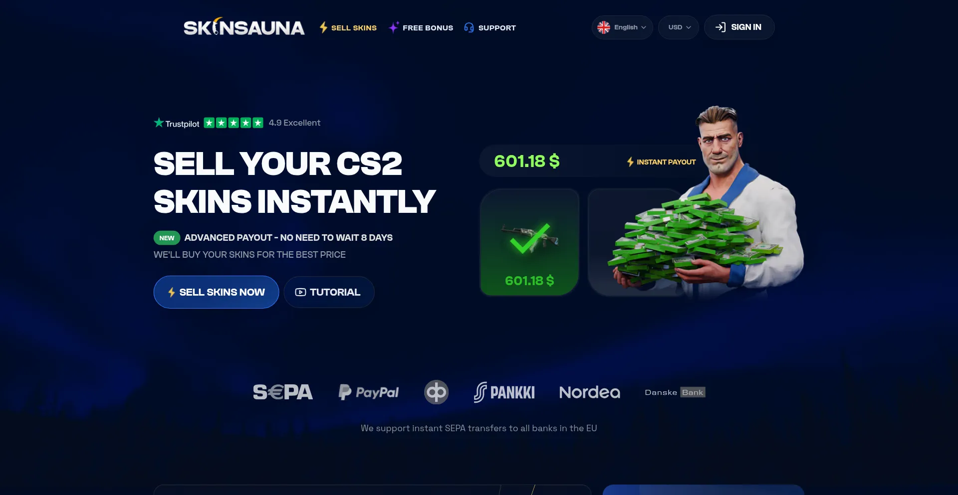 Sell CS2 Skins Instantly | Skinsauna – Fast Bank Transfer