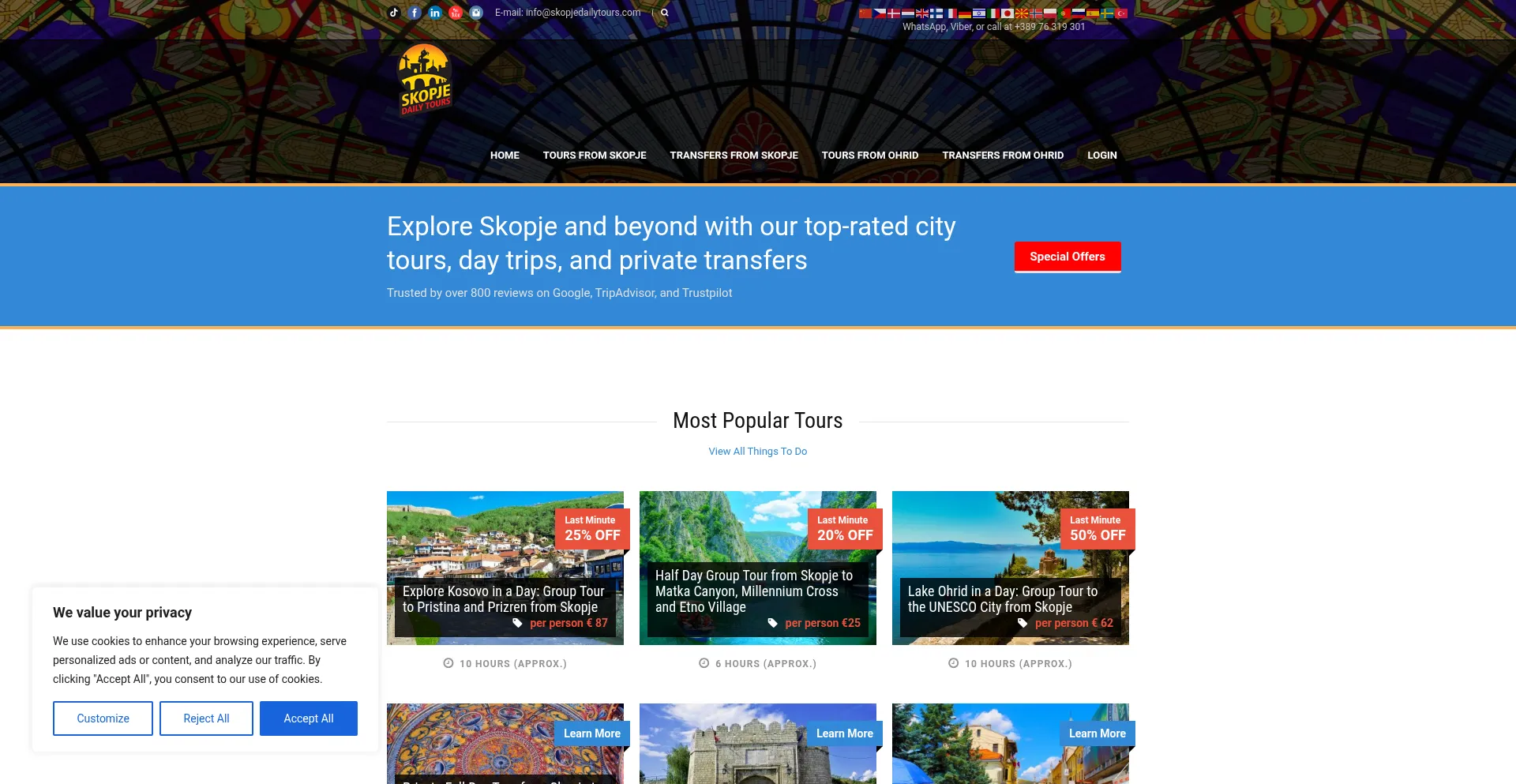 The website implements cookie consent mechanisms in compliance with privacy regulations such as GDPR or CCPA. This demonstrates that skopjedailytours.com adheres to data protection standards and provides users with control over personal data collection practices.