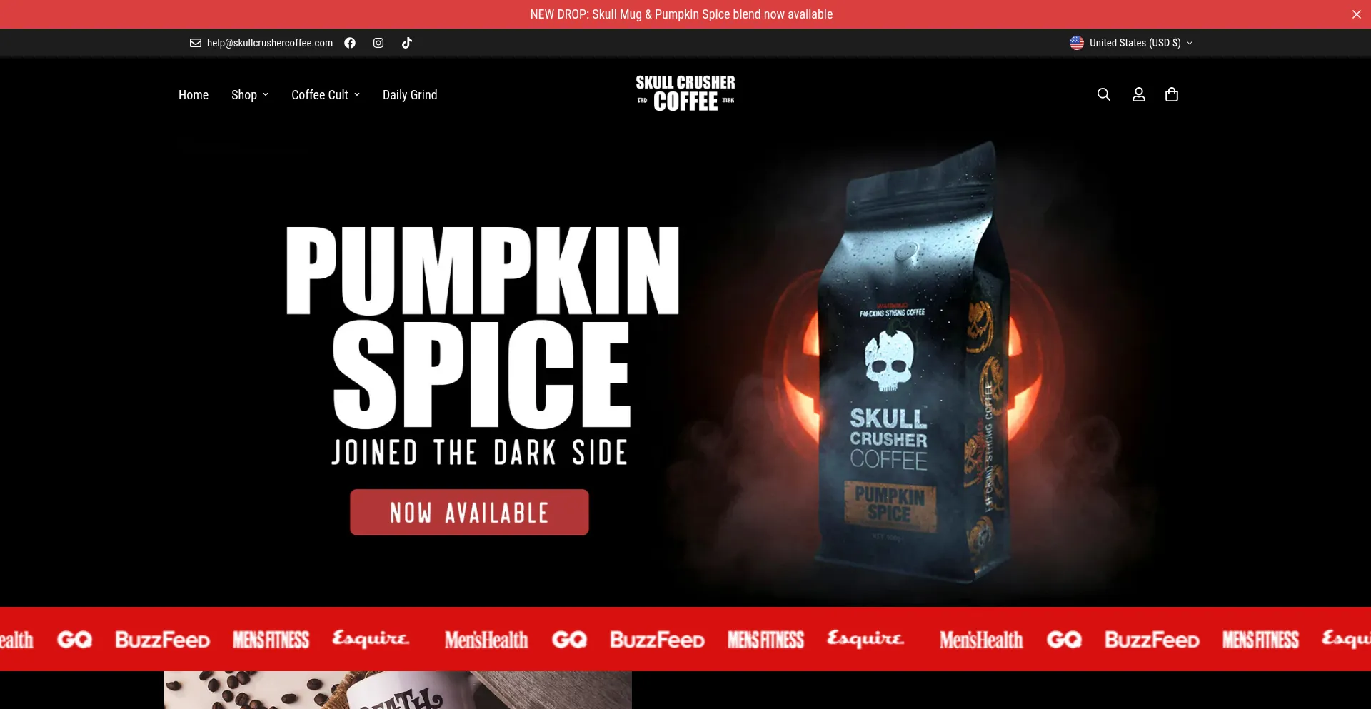Our analyzer determines that website skullcrushercoffee.com is using Shopify CMS. Shopify is a popular e-commerce platform, powering around 4.4% of websites globally.