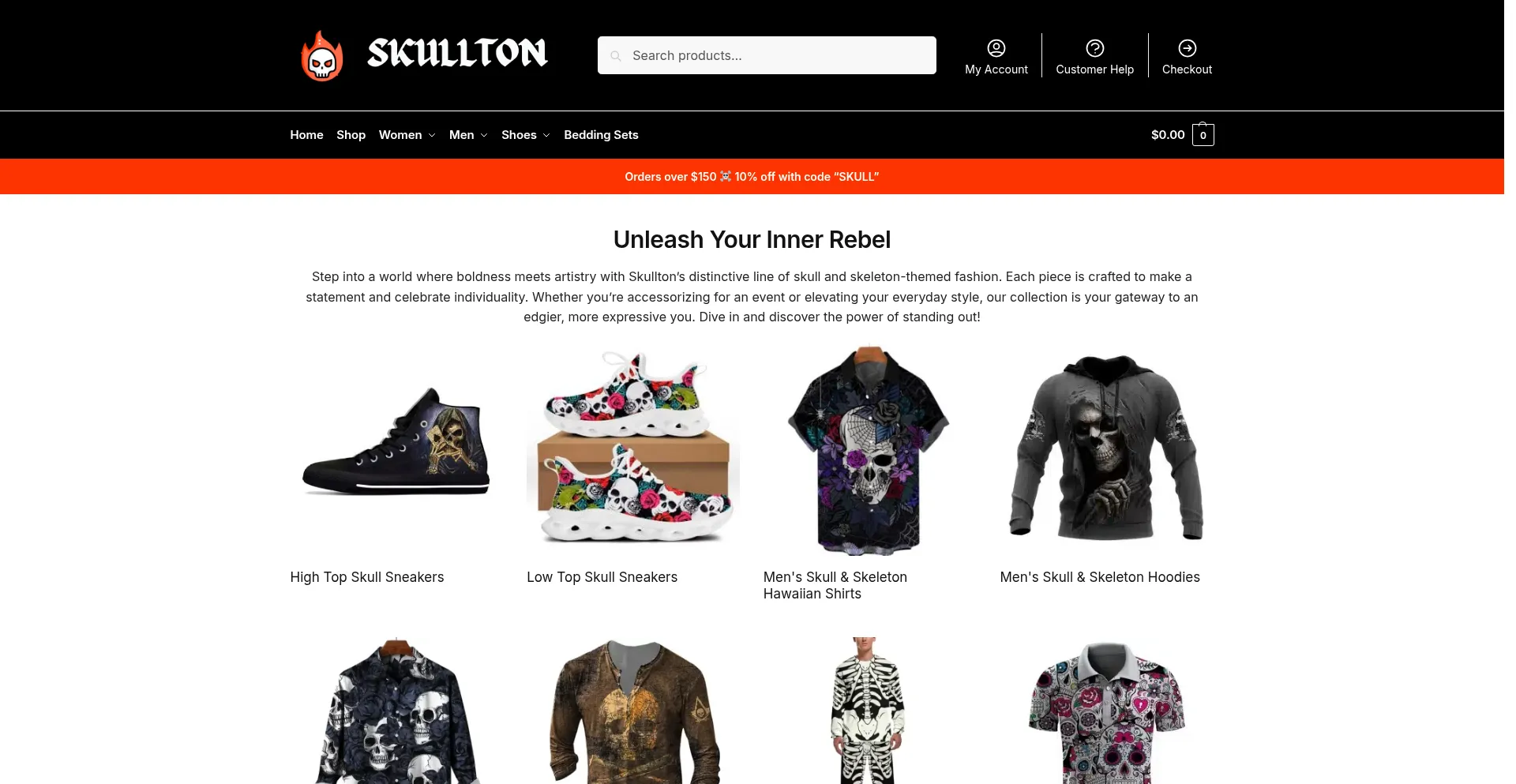 Step into a world where boldness meets artistry with Skullton’s distinctive line of skull and skeleton-themed fashion. Each piece is crafted to make a statement…