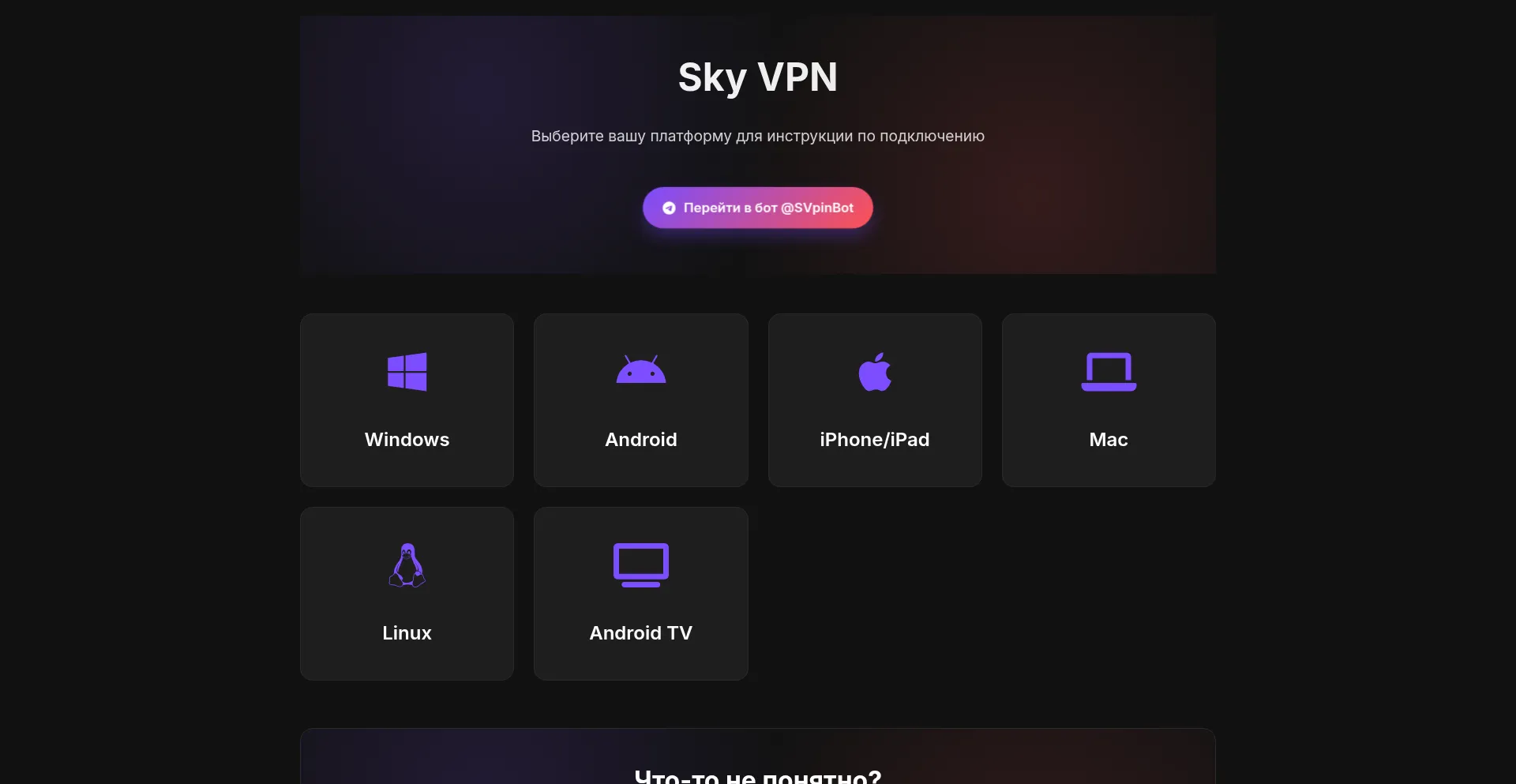 The sky-vpn.ru website offers a mobile application for Android devices, indicating expanded platform presence beyond web-based services.