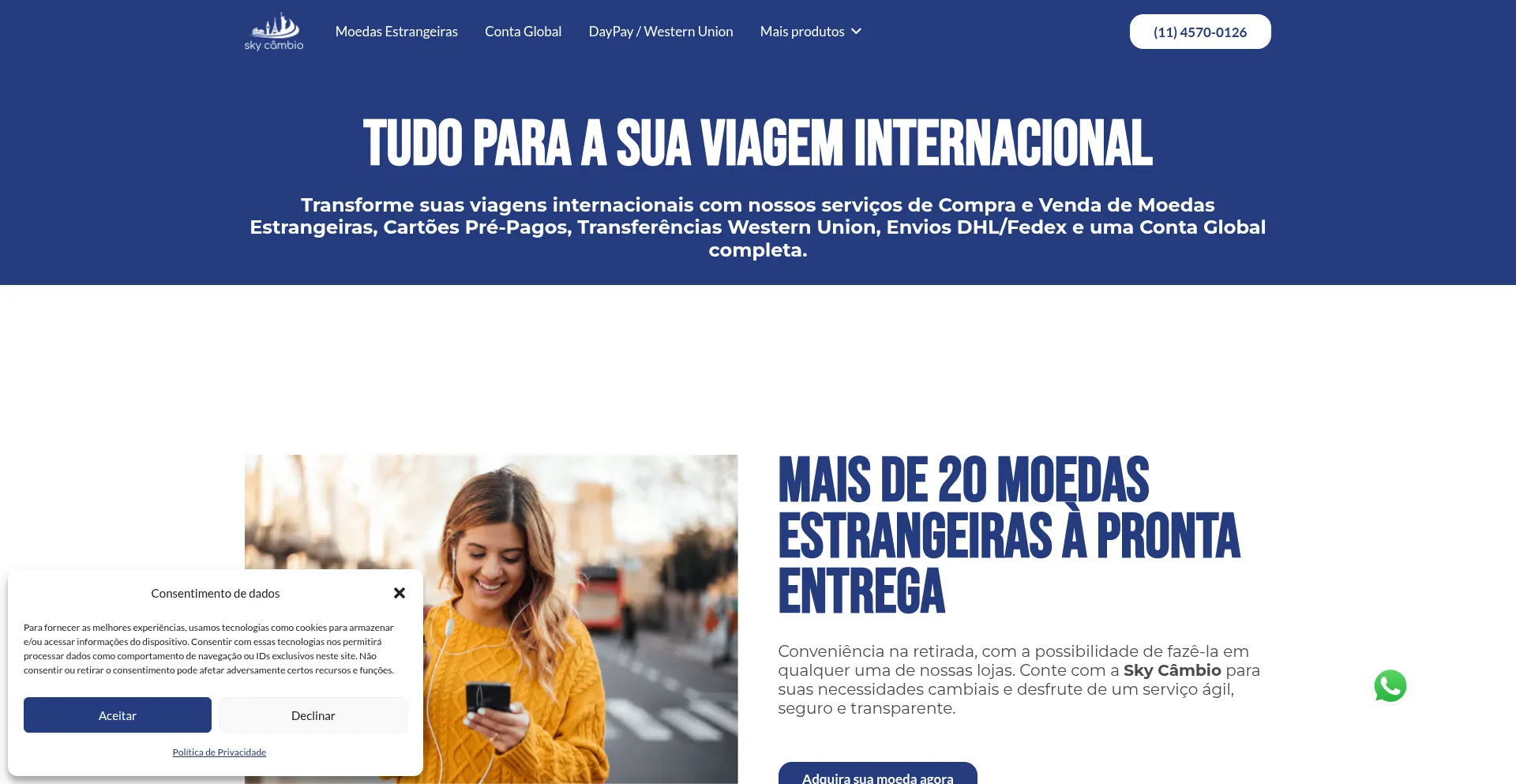 Compre dólar, euro e outras moedas estrangeiras na Sky Câmbio. Casas de câmbio em São Bernardo, Santo André, São Caetano e Mooca. Preço justo