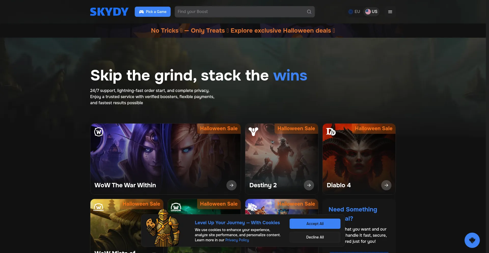 Skip the grind — get fast, secure game boosts, coaching and carry services for WoW, Diablo 4, Destiny 2 and more. 24/7 support • VPN-protected • Fair pricing.