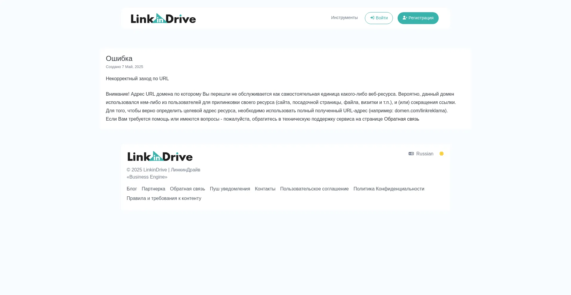 Ошибка - LinkinDrive | ЛинкинДрайв