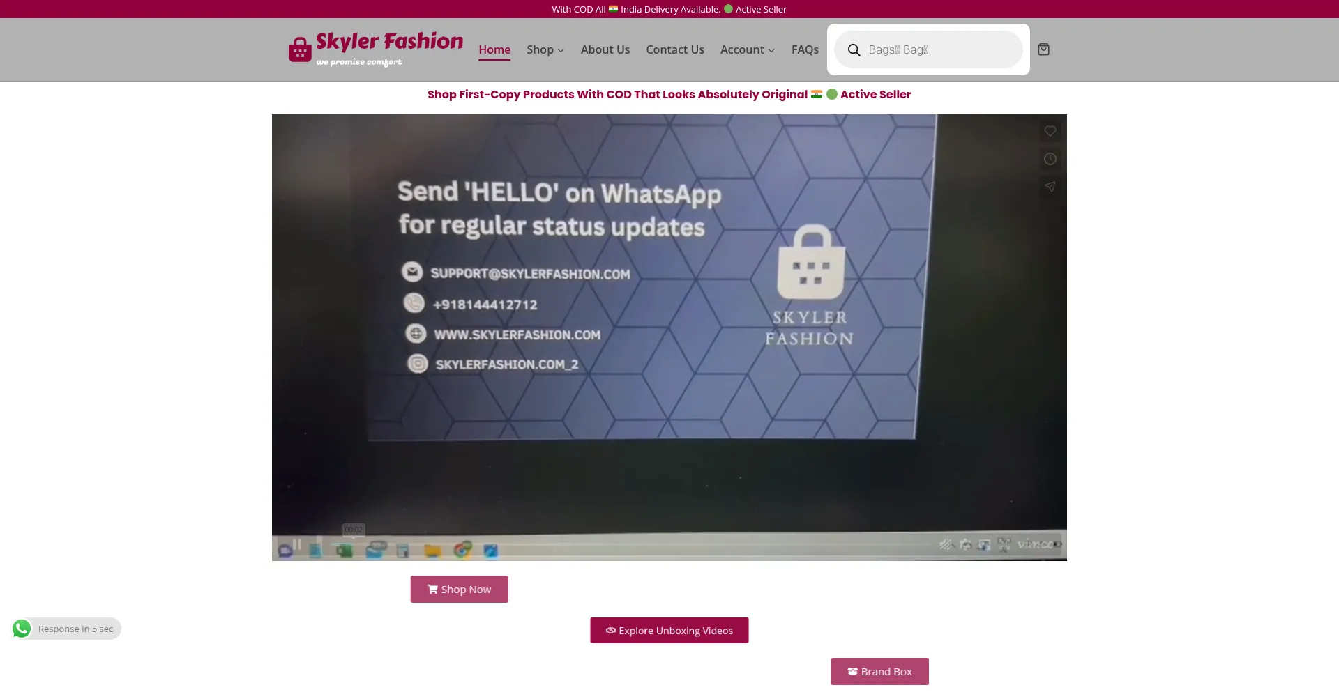 The website features luxury brand names or high-value products. This may indicate potential counterfeit merchandise or unauthorized brand usage, particularly if the site lacks official dealer authorization. Exercise heightened caution when evaluating authenticity.