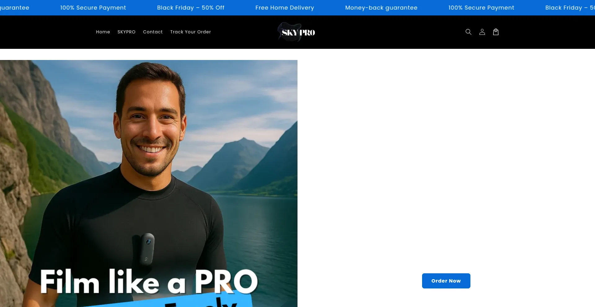 Skyprocamera.com displays patterns commonly associated with problematic e-commerce sites: social media promotion, payment and data collection, and reported delivery issues. These patterns suggest potential risks for customers, though individual experiences may vary.