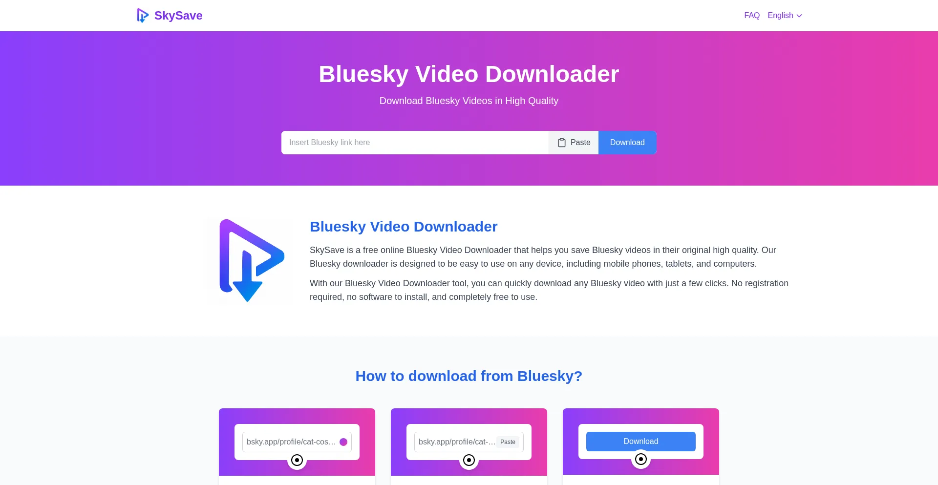 Free Bluesky Video Downloader - Download Bluesky Videos in high quality with SkySave. No registration, no limits, works on all devices. Fast and secure!