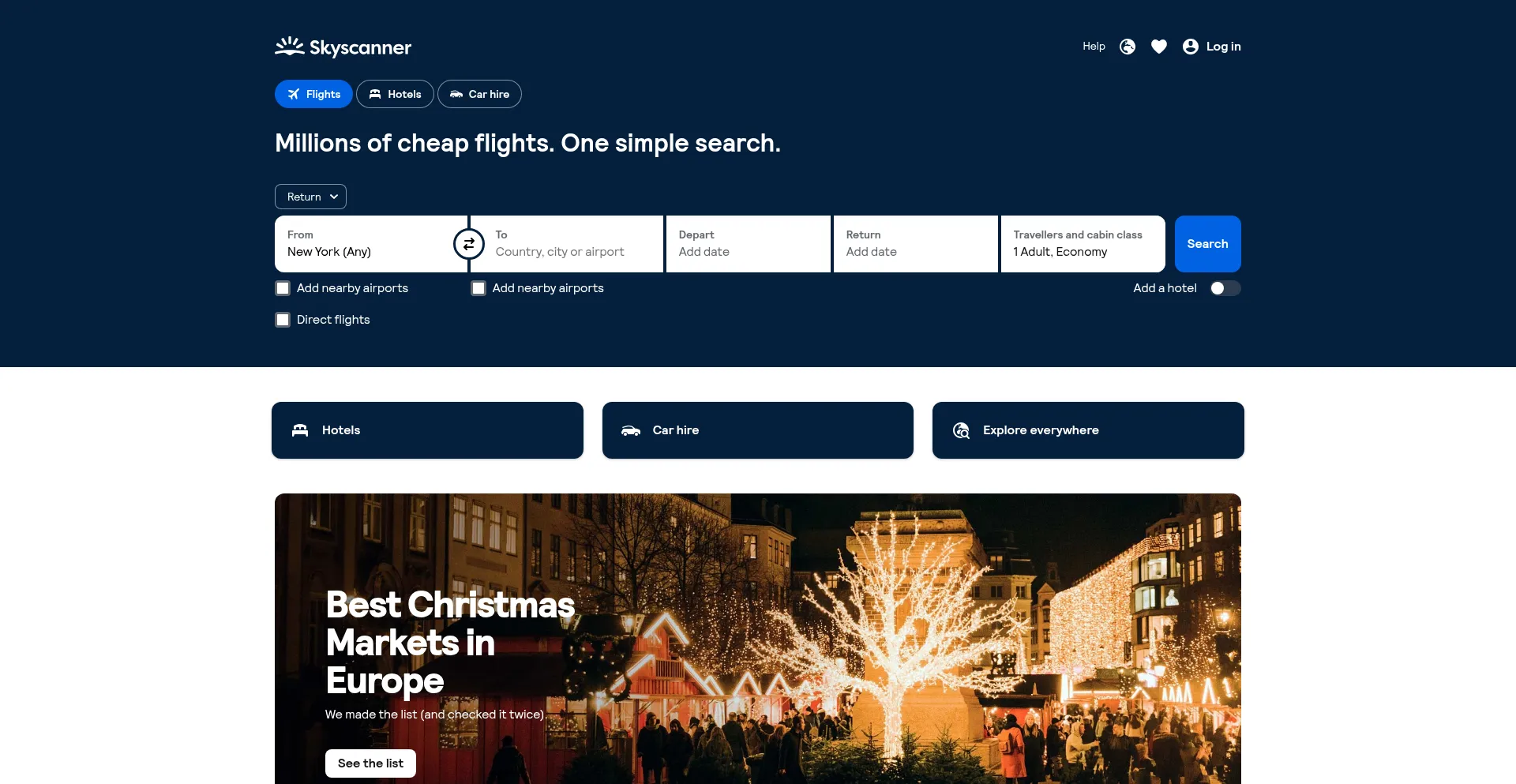 Compare millions of flights, as well as car hire and hotels worldwide - for free! Skyscanner is the travel search site for savvy travellers.