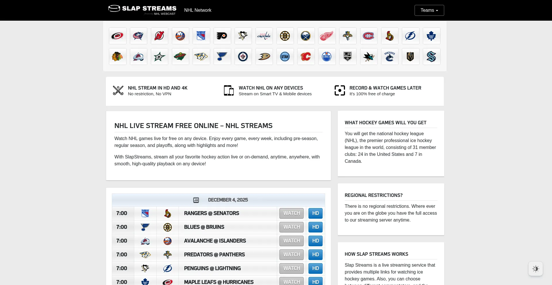 NHL Live Stream Free Online | NHLStreams - Slap Streams