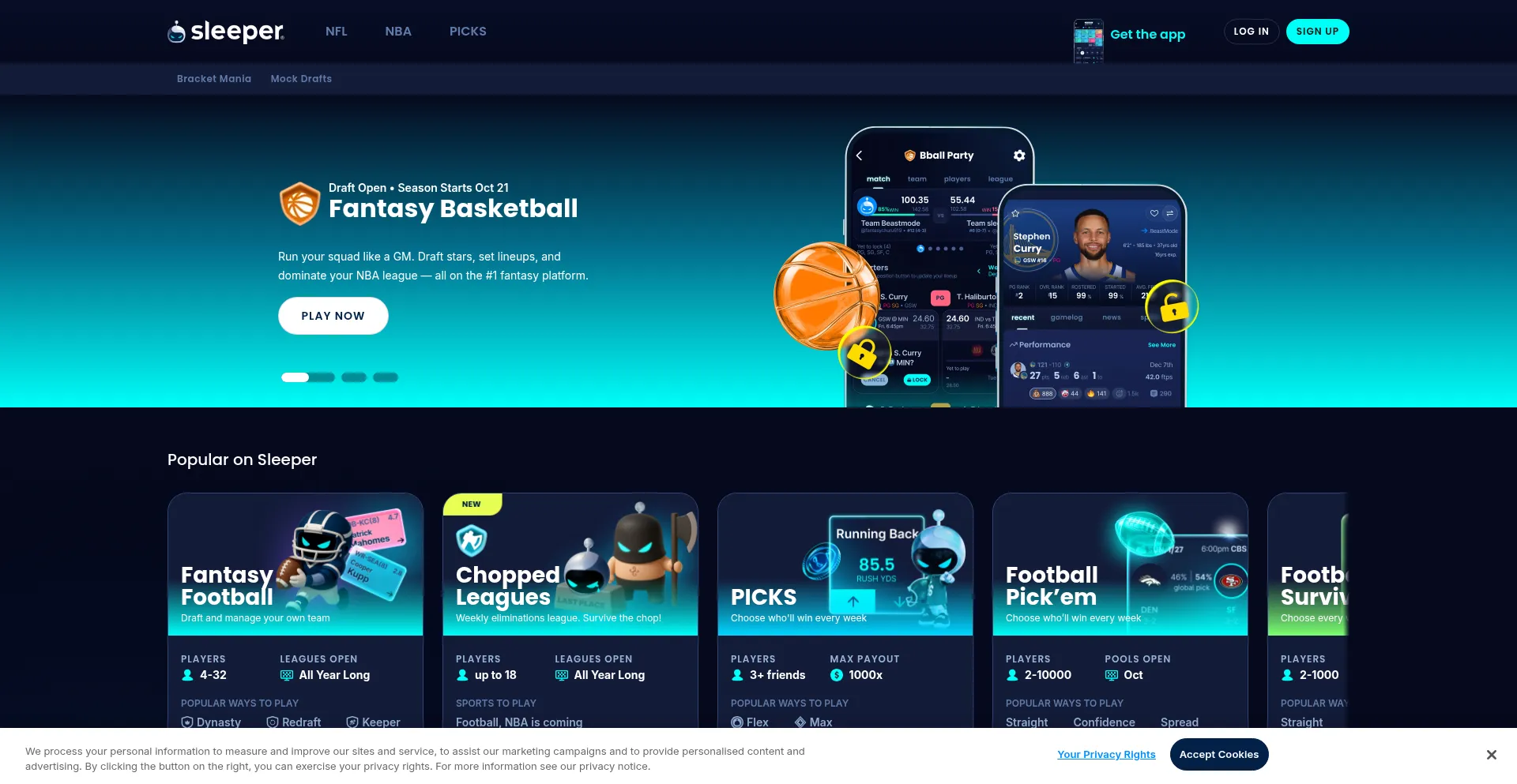 The website implements cookie consent mechanisms in compliance with privacy regulations such as GDPR or CCPA. This demonstrates that sleeper.com adheres to data protection standards and provides users with control over personal data collection practices.
