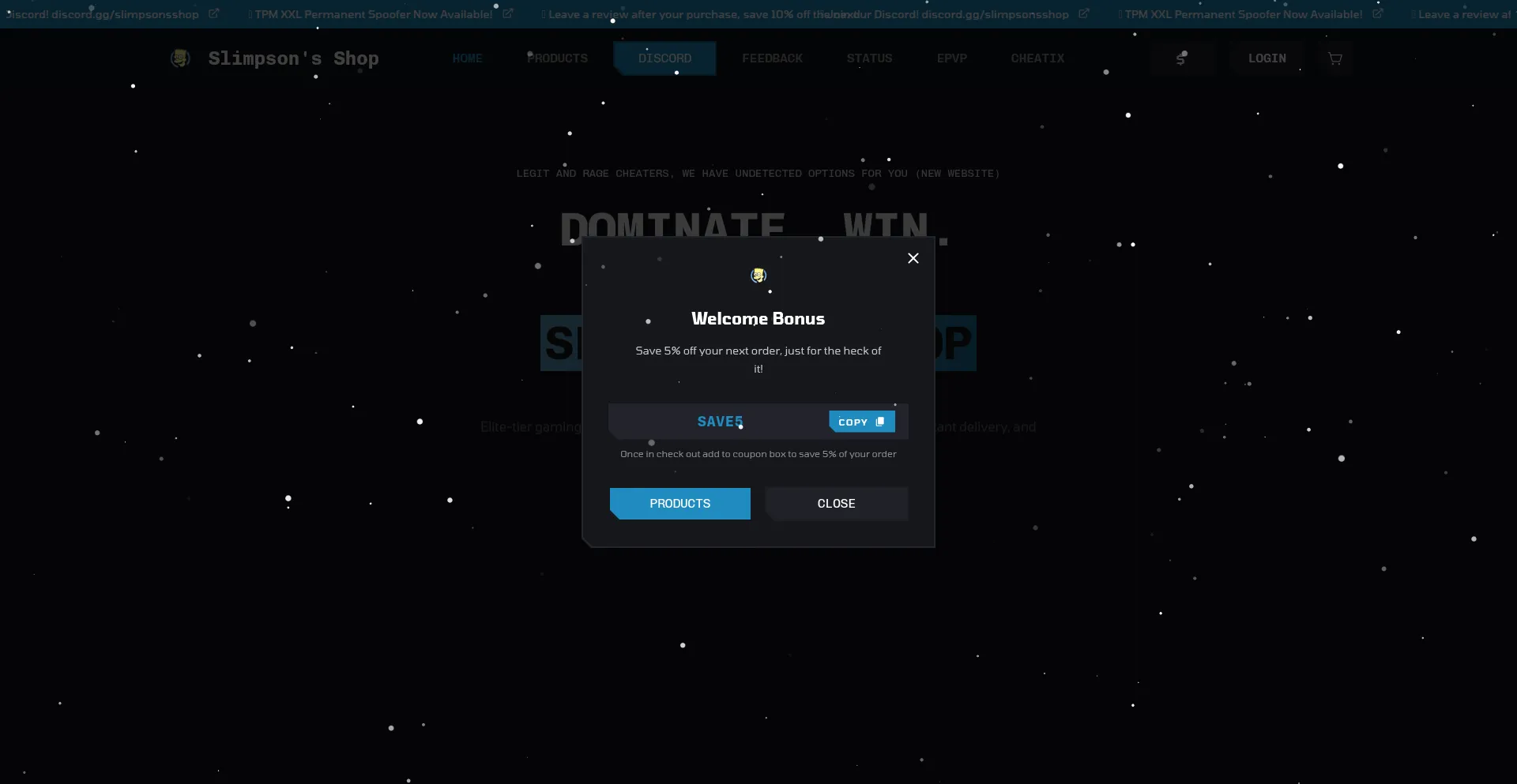 Welcome to Slimpson's Shop! Home of the safest and most reliable cheats. Shop with us for fast support, smooth gameplay, and uninterrupted service! EPVP ID Verified, 40+ positiv...