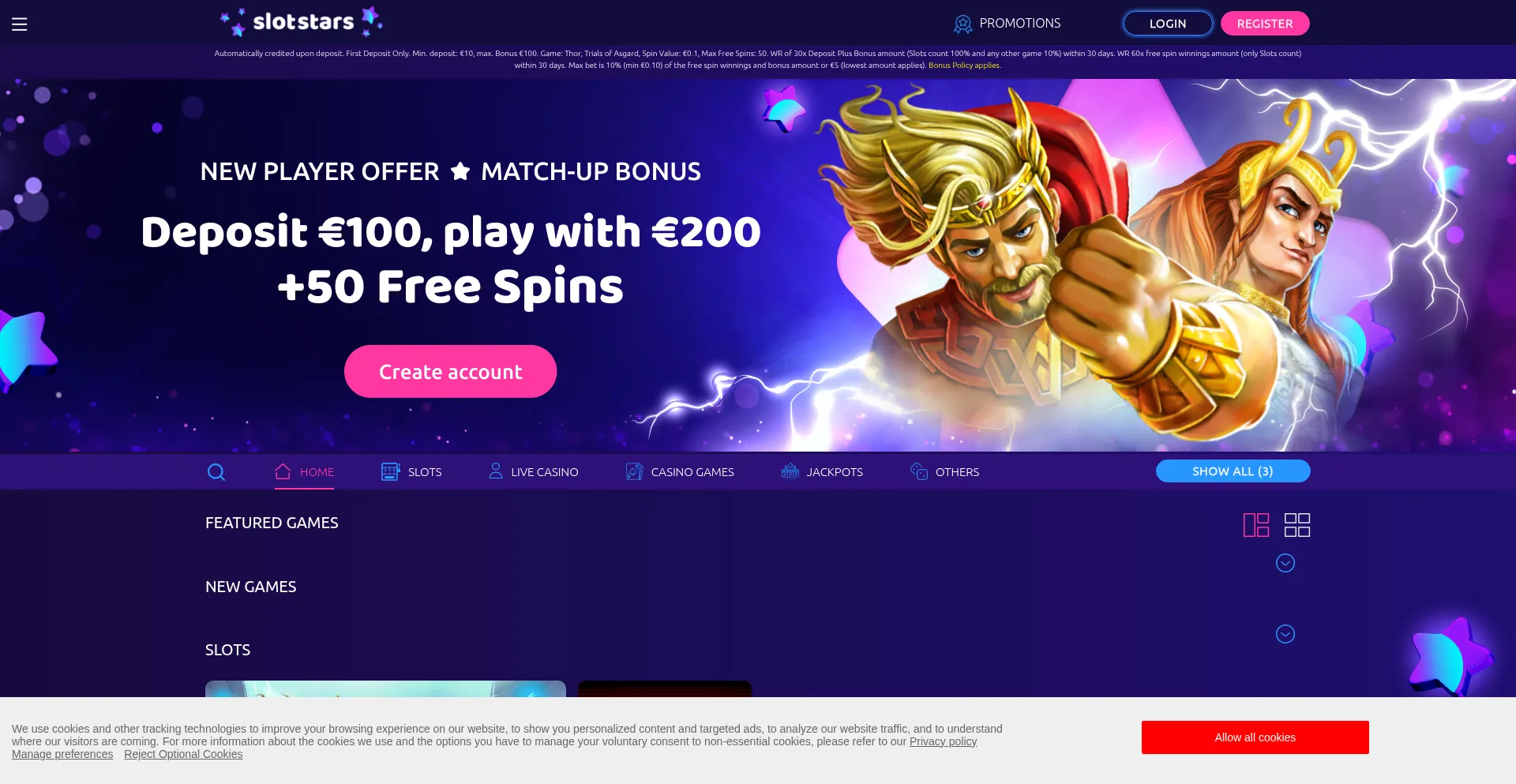 Home | 100% up to €100 + 100 free spins | SlotStars