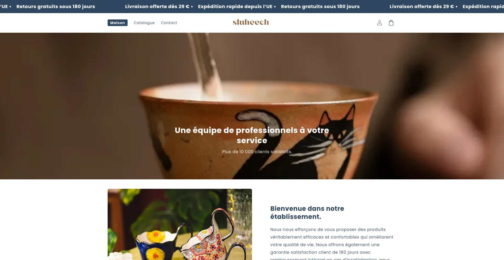 Analysis indicates that sluheech.com operates as an e-commerce platform facilitating online transactions for goods or services. The website implements shopping cart functionality, payment processing systems, and product catalog features typical of commercial retail operations.