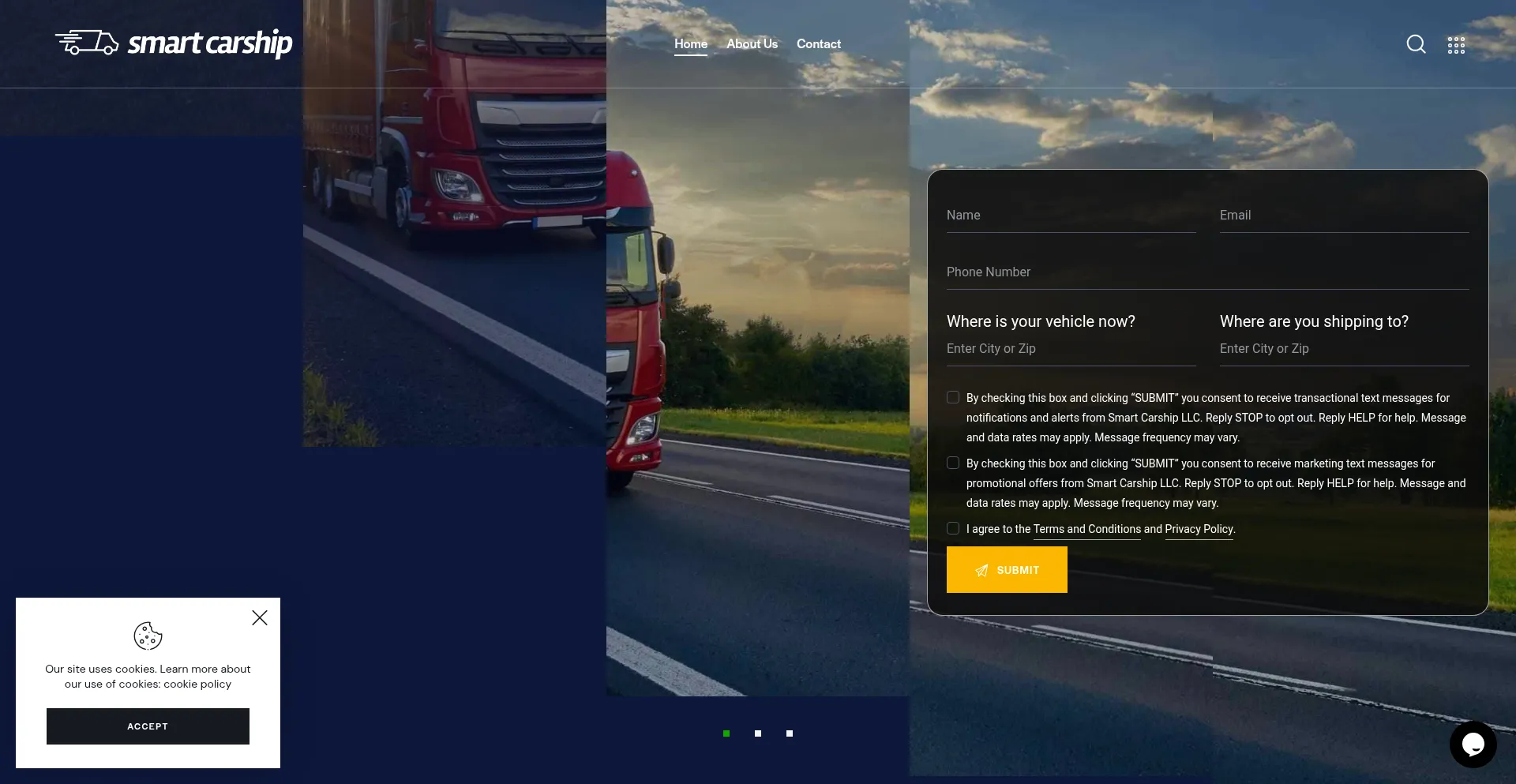 The smartcarship.com website implements data collection forms requesting personal information including names, email addresses, phone numbers, or other sensitive details. Users should verify the legitimacy of it and review privacy policies before submitting personal data.