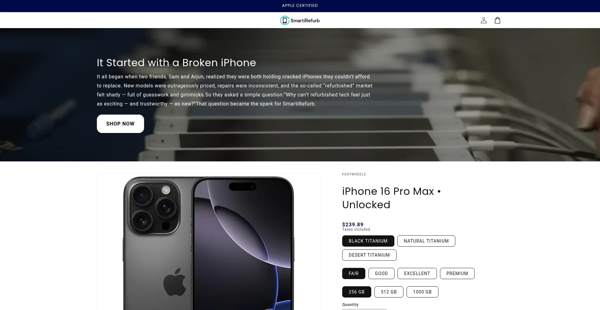 Analysis indicates that smartirefurb.com operates as an e-commerce platform facilitating online transactions for goods or services. The website implements shopping cart functionality, payment processing systems, and product catalog features typical of commercial retail operations.