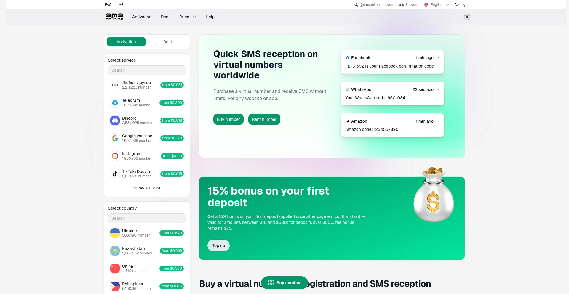 Fast and convenient rental of virtual numbers for receiving SMS. Reliable temporary and long-term numbers for account activation and verification on any online services. Get you...