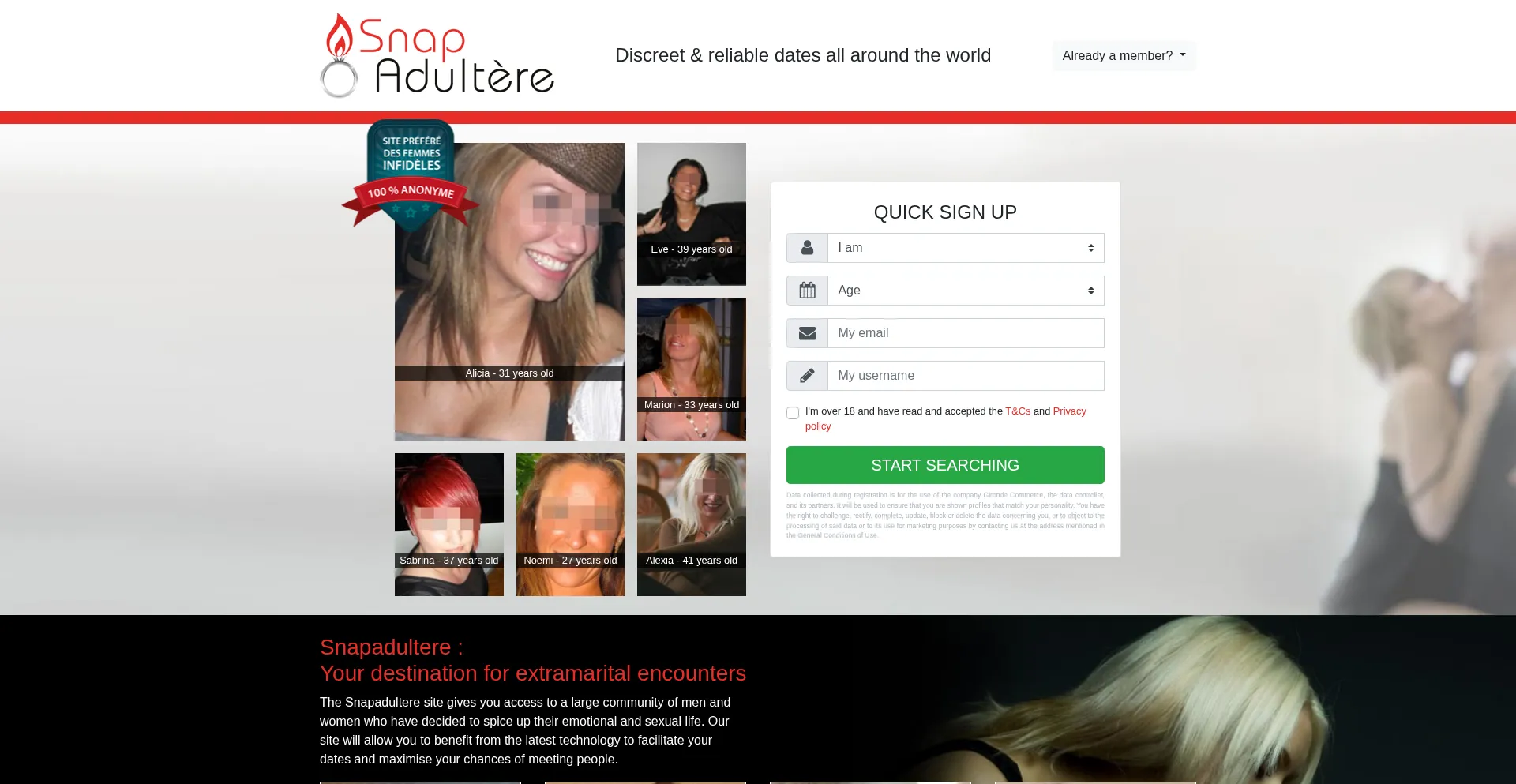 The snapadultere.com website uses Google Tag Manager to add and update tracking tags on its website.