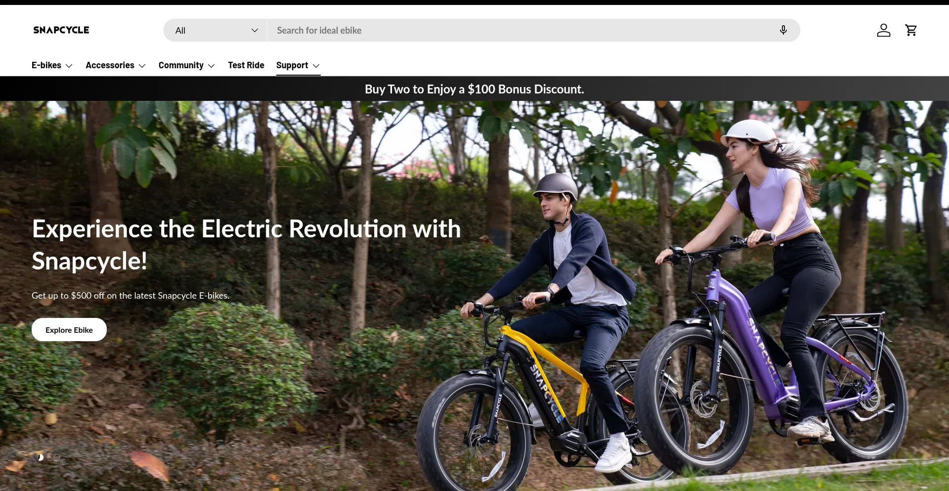 Discover eco-friendly transportation at Snapcycle - Your premier E-Bike store. Explore our premium electric bikes online for a greener commute & thrilling rides. Shop now!