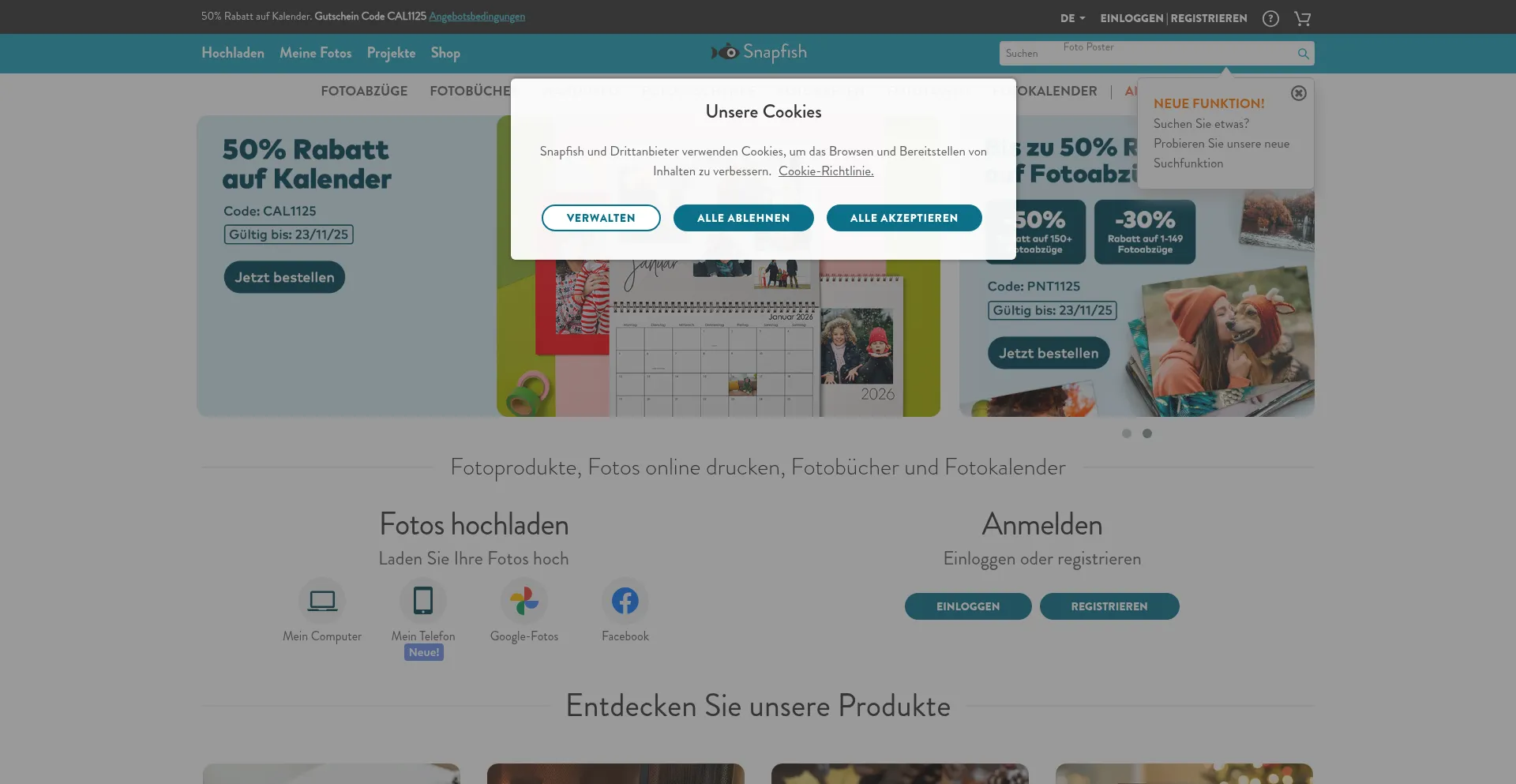 The website implements cookie consent mechanisms in compliance with privacy regulations such as GDPR or CCPA. This demonstrates that snapfish.de adheres to data protection standards and provides users with control over personal data collection practices.