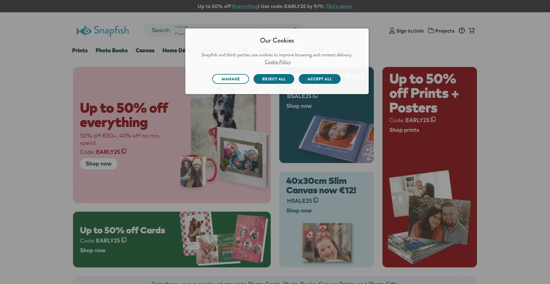 The website implements cookie consent mechanisms in compliance with privacy regulations such as GDPR or CCPA. This demonstrates that snapfish.ie adheres to data protection standards and provides users with control over personal data collection practices.