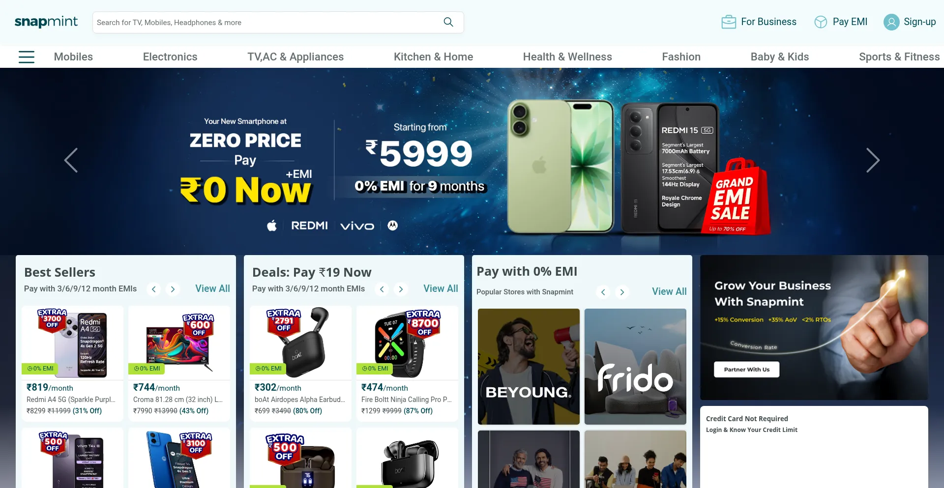 Snapmint: Easy EMI Shopping without Credit Card | Debit Card EMIs